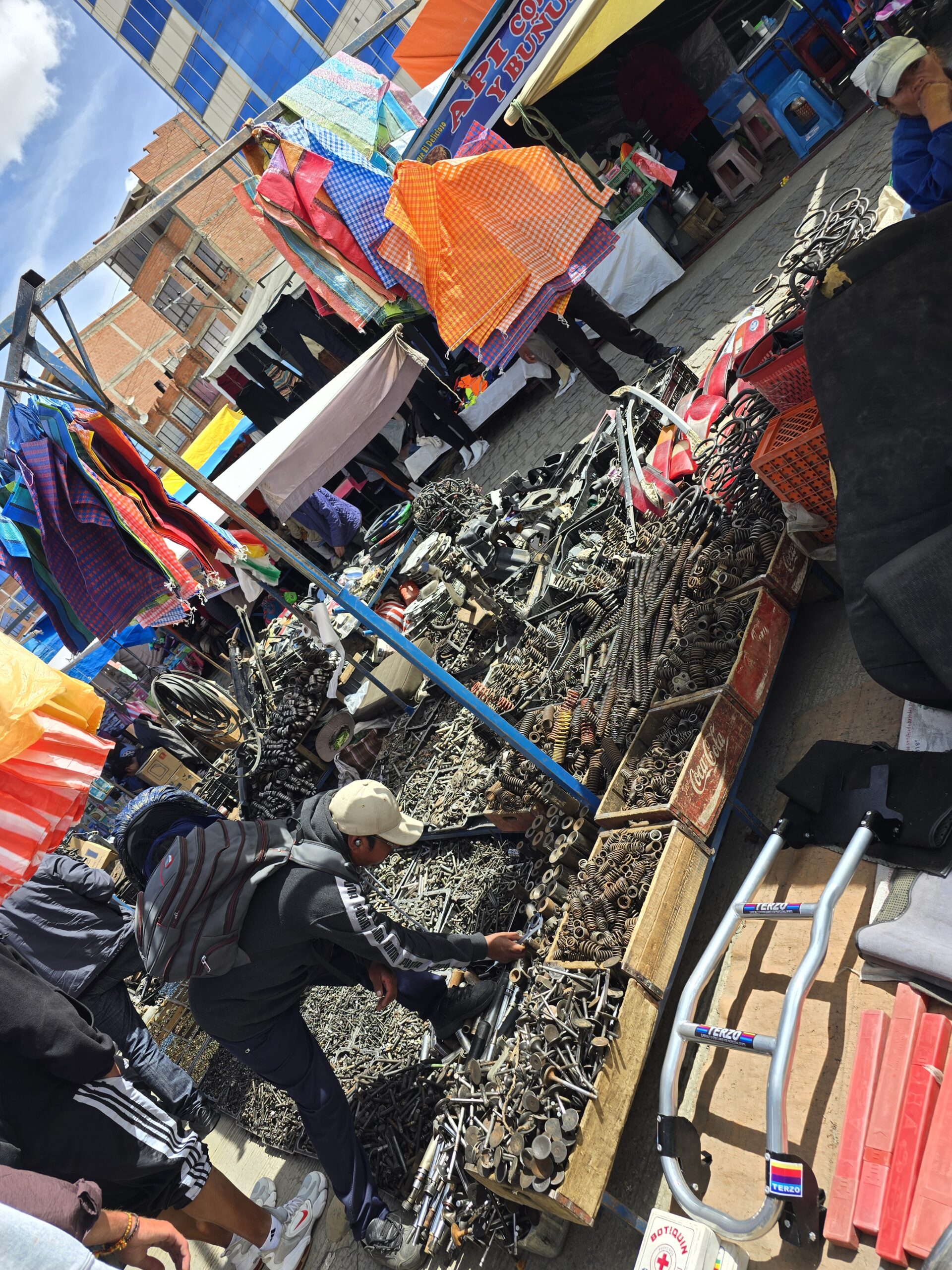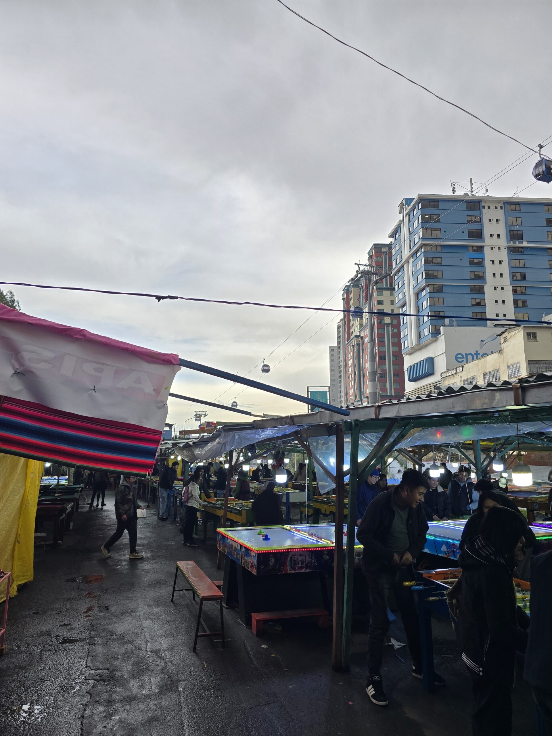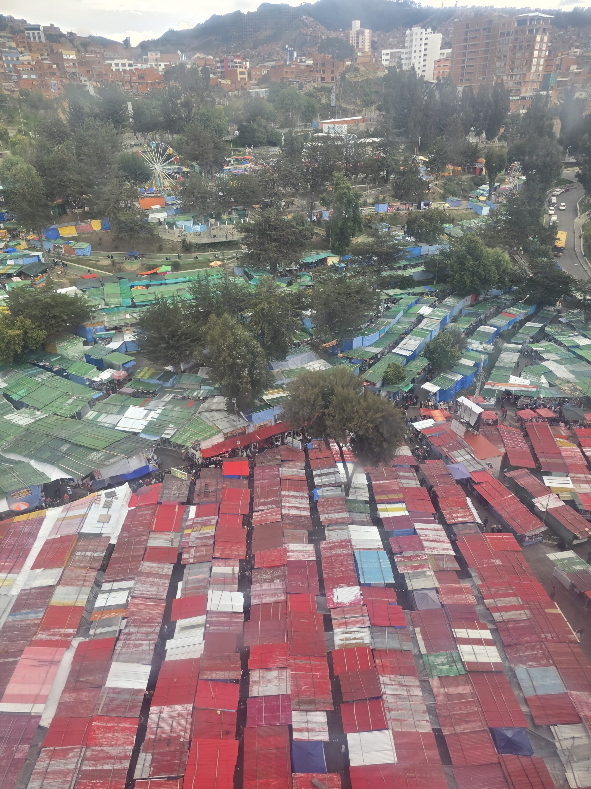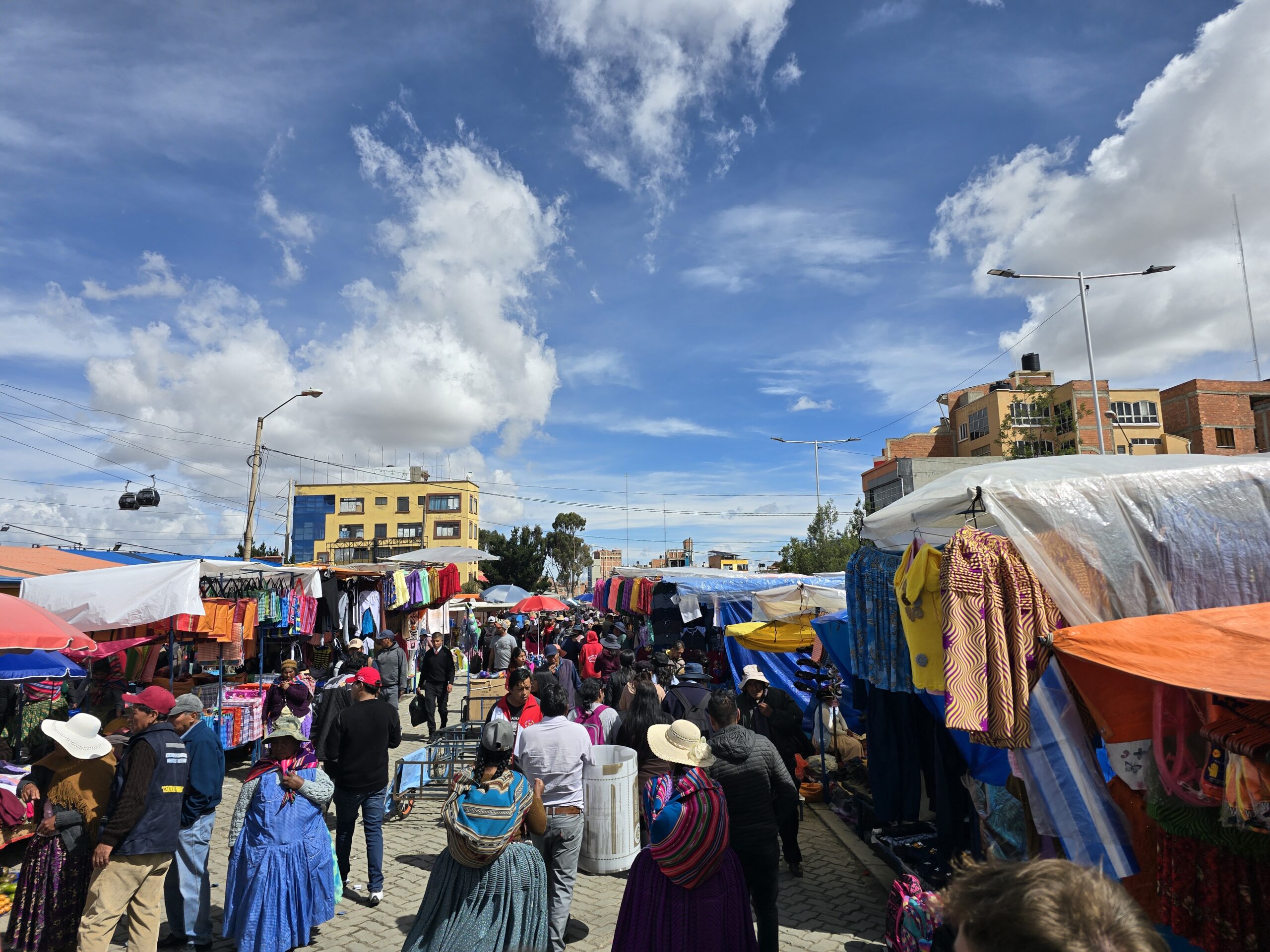 Nachdem wir alle relativ lange geschlafen haben, bin ich mit Sean Mittagessen gegangen. Wir hatten einen kleinen Almuerzo place gefunden und haben dort ein richtig gute Mittagessen gegessen für schlappe 1,7€. Das muss man ja echt mögen an Bolivien! Danach bin ich mit Remy und seinem Date rauf nach El Alto auf den längsten Markt der Welt, der immer Sonntag stattfindet.
