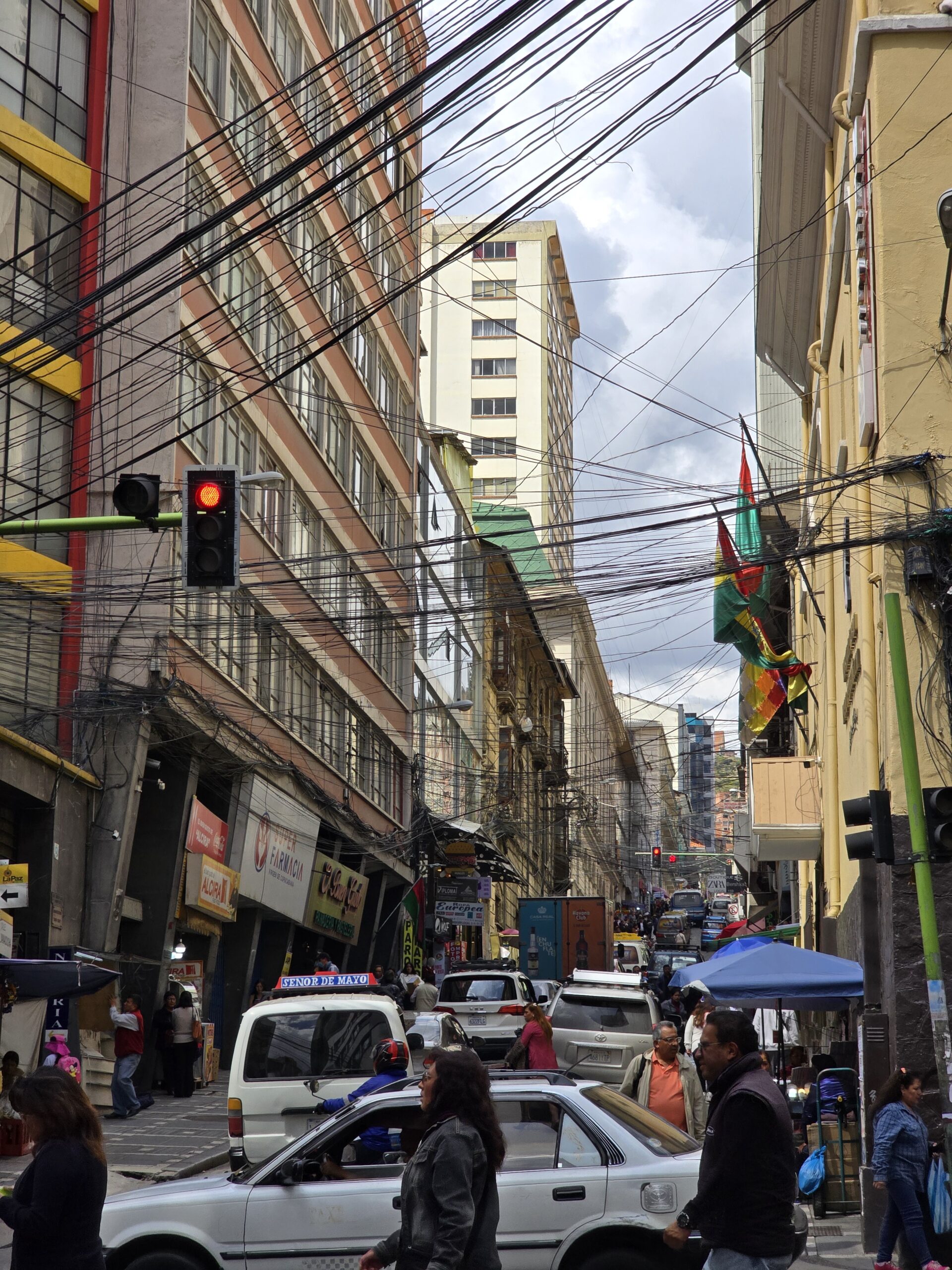 Zunächst hatte ich mit Jurran, einem Niederländer, den wir auf der Huayna Potosi Tour kennengelernt hatten, ein wunderbares Frühstück in dem Restaurant in dem wir zwei Abenden zuvor einen guten Burger hatten. Die Terrasse befindet sich im 5. Stock mit einer schönen Aussicht über Downtown La Paz. An sich wäre es perfekt gewesen, wenn die nicht gerade an diesem Tag unten vor der Tür Straßenarbeiten erledigt hätten.