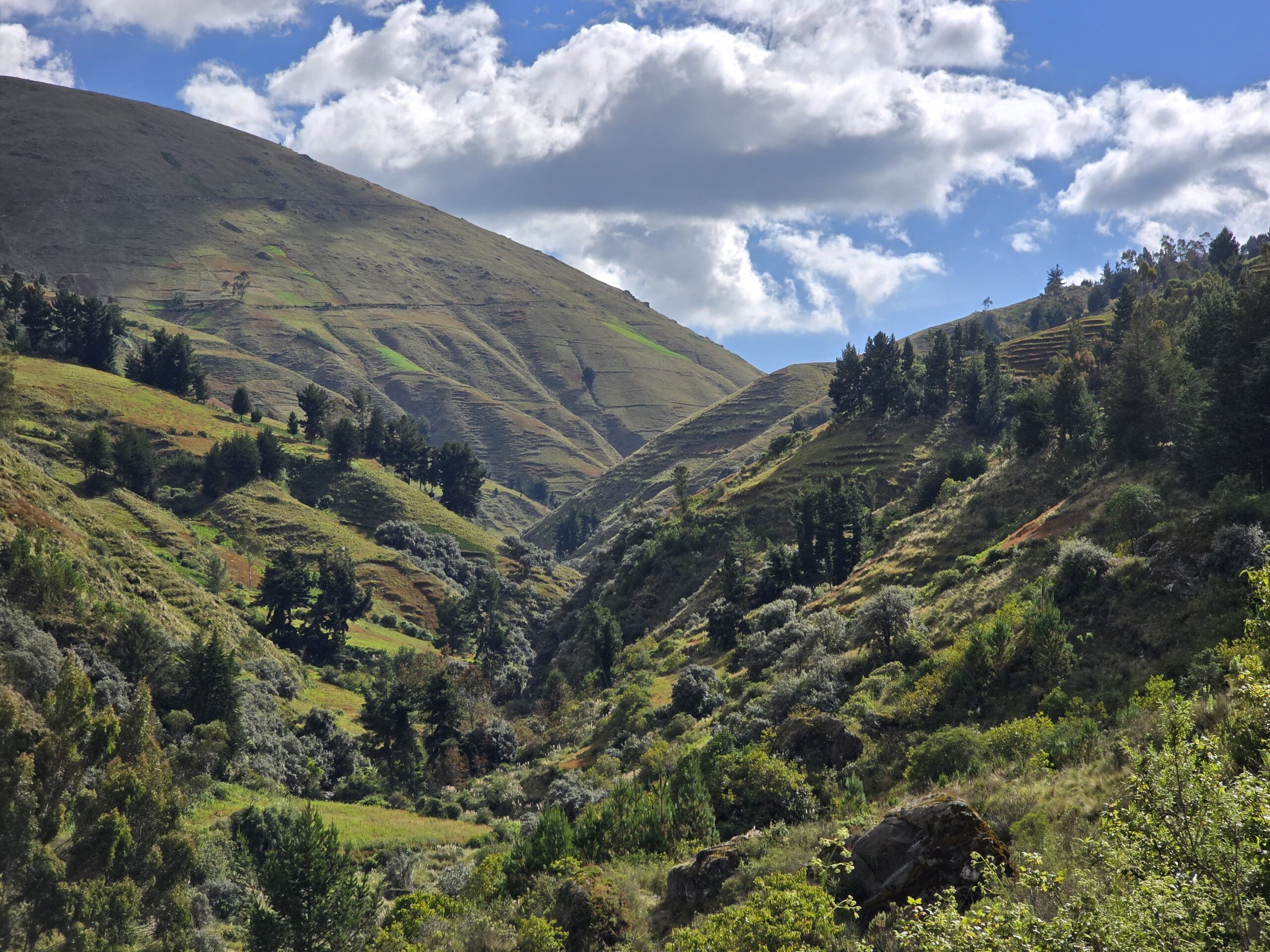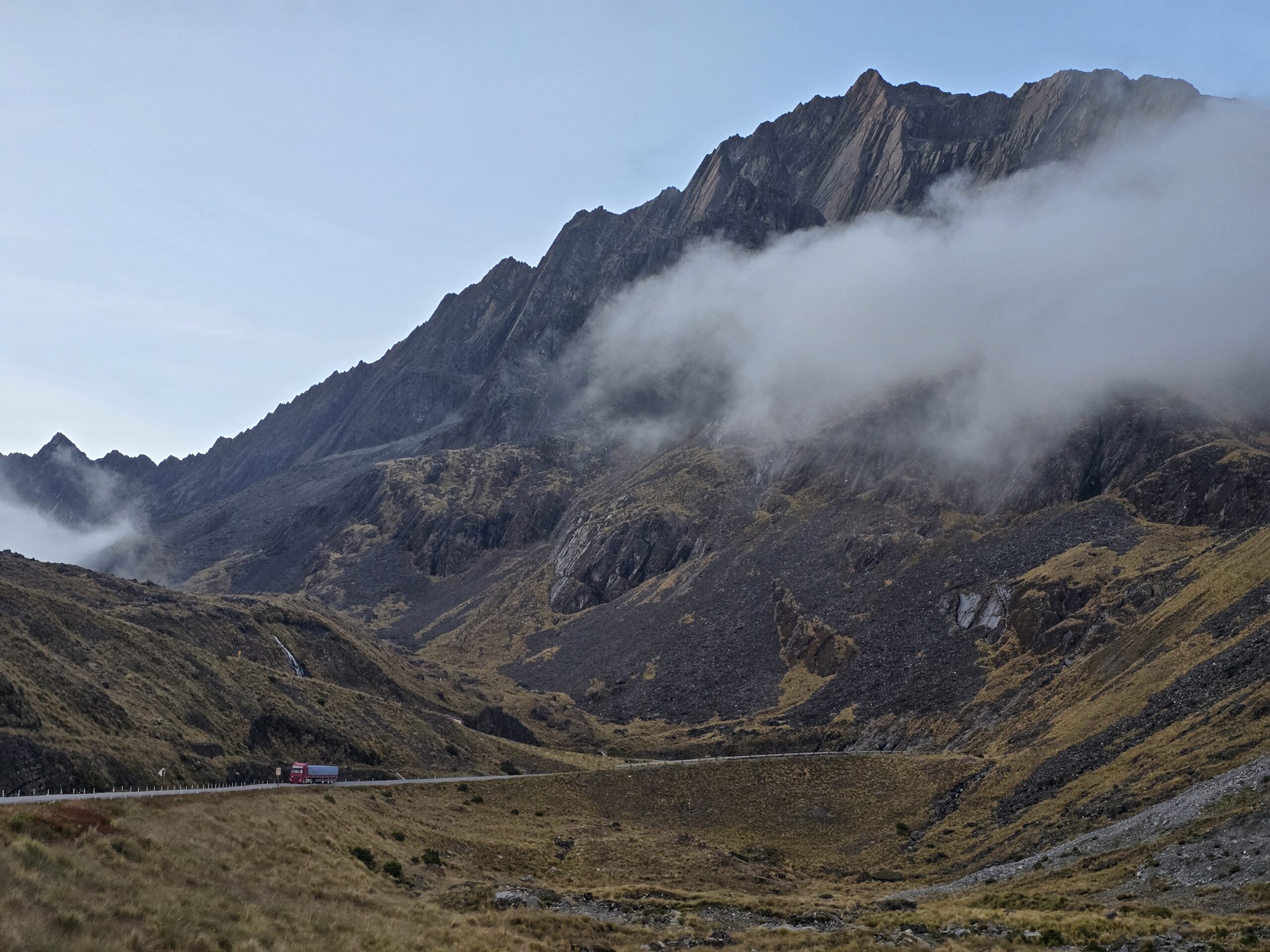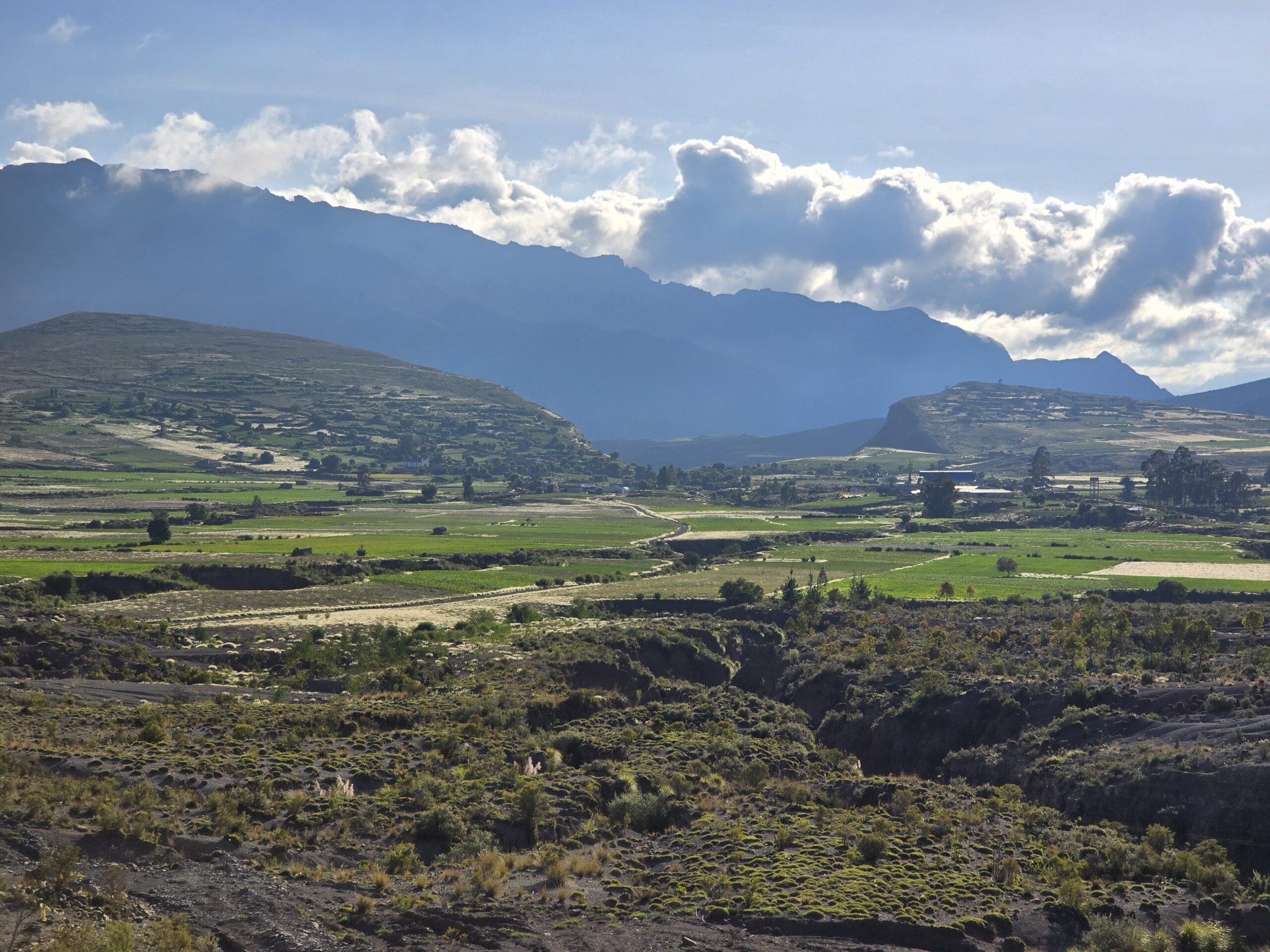 Der Restliche Trek war dann nicht mehr allzu spannend, da man eigentlich nur Kilometer auf einer Schotterstraße geschrubbt hat. Am Ende waren es dann auch fast 20 statt der versprochenen 17,5. Nun gut, gegen 20 nach 12 bin ich dann schon in Potolo angekommen und musste feststellen, dass der nächste Bus erst um 14 Uhr fuhr. Warte ich halt! Dabei habe ich mich dann mit einer lokalen Chaulita unterhalten und ein bisschen Snacks geteilt, eine nette Erfahrung, die man auch wieder nur machen kann, wenn man Spanisch spricht. Tatsächlich kam um 13 Uhr doch ein Bus, der war aber schon so voll, dass ich nicht mehr reinkam. Der Bus um 14 Uhr war größer, aber bereits ähnlich voll, sodass ich 2,5h stehen musste in einem Gang, in dem ich nicht aufrecht stehen konnte. War schön kann ich euch sagen!