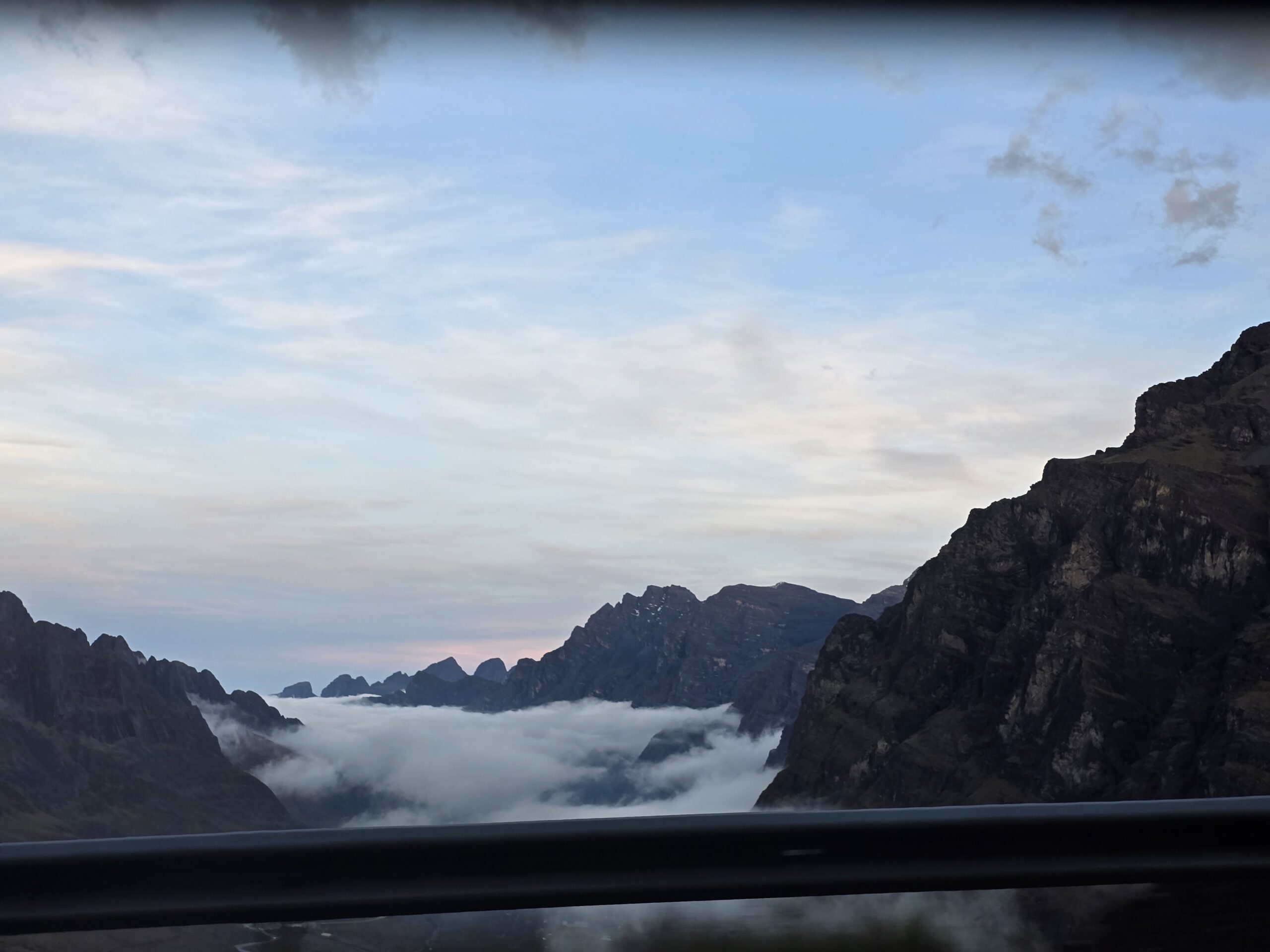 Es hatte auch einen Vorteil tagsüber unterwegs zu sein, die Ausblicke waren einfach der Hammer! Ich habe die ganze Zeit Musik gehört und erstaunt aus dem Fenster geschaut. Etwa eine Stunde vor der Ankunft hatten wir dann noch einen kleinen „Unfall“. Es haben sich ein paar Sachen von dem Dachgepäckträger gelöst und auf der Straße verteilt. Da haben wir dann erstmal beim Aufsammeln geholfen.