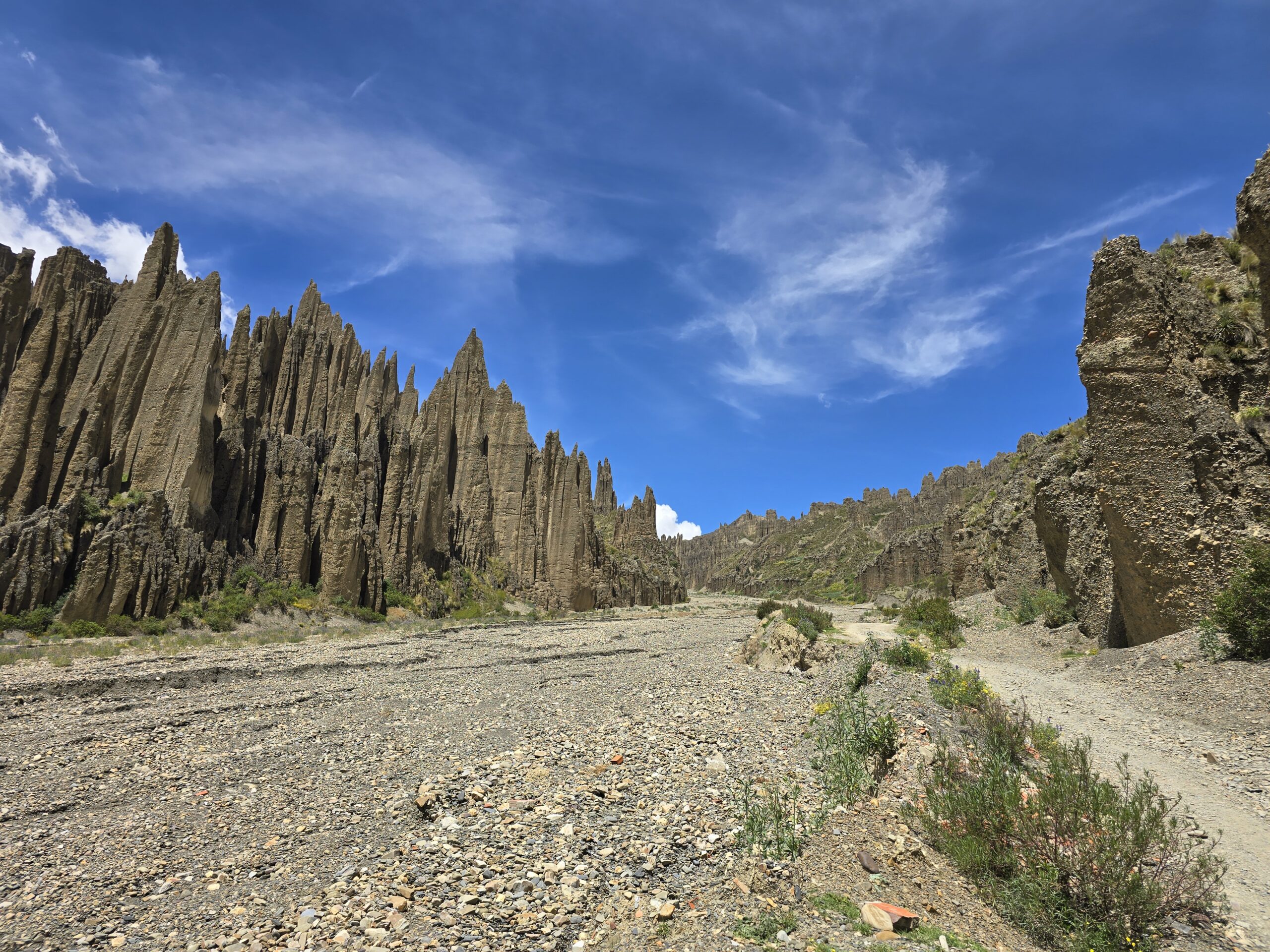 Mittags haben wir uns dann mir Remy getroffen und sind zum Valle de Los Animas gefahren. Das dauerte mit einem Taxi ca. eine halbe Stunde. Dieses Tal ist ein Flussbett, dass scheinbar nur bei starkem Regen mit Wassern durchspült wird. Die Wände des Tals sind von bizarren Strukturen geprägt die durch Erosion geformt wurden. Der Name kommt scheinbar daher, dass man bei starkem Wind die Seelen von Verstorbenen schreien hören kann, was wohl durch die Verwirbelungen an den Türmen entsteht.