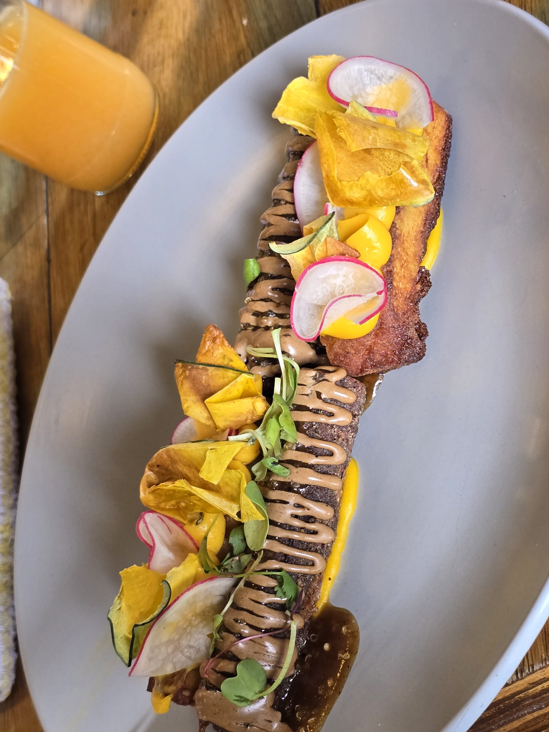 Nachdem wir etwas länger geschlafen hatten und unsere Sachen für den Check out fertig gemacht hatten, sind wir zu meinem Lieblingscafe für einen kleinen Snack. Netterweise war das Restaurant, bei dem wir Mittagessen wollten, direkt in dem gleichen Innenhof. Somit konnten wir uns um halb 12 direkt dort anstellen. Ja hier muss man sich anstellen, denn dieses Restaurant ist sehr beliebt, es gibt keine Reservierungen und es öffnet nur von 12 bis 14:30. Das hat sich auch gelohnt, denn das Essen war super gut und das ganze für schlappe 11€!