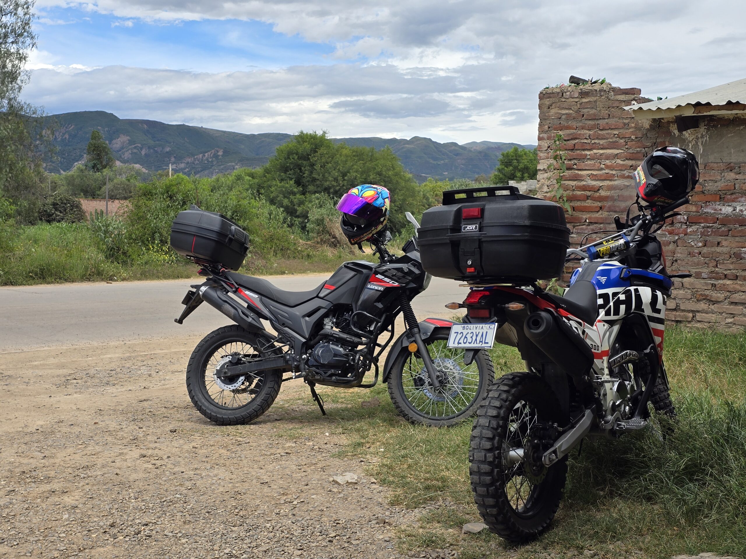 Da wir eine Motorradtour nach Torotoro, oder sogar bis nach Santa Cruz machen wollen und Remy kein Schalter fahren kann, musste ich ihm das eben beibringen. Wir hatten uns an diesem Tag also zu zweit ein Motorrad ausgeliehen. Das Ziel war es, dass er am Ende ein manuelles Motorrad fahren kann und außerdem wollten wir zu einem See etwa 1,5h außerhalb der Stadt fahren. Außer dem Helm gab es mal wieder keinerlei Sicherheitsklamotten. In Europa würde ich das nie machen, aber wenn man hier fahren will, ist das eben so.