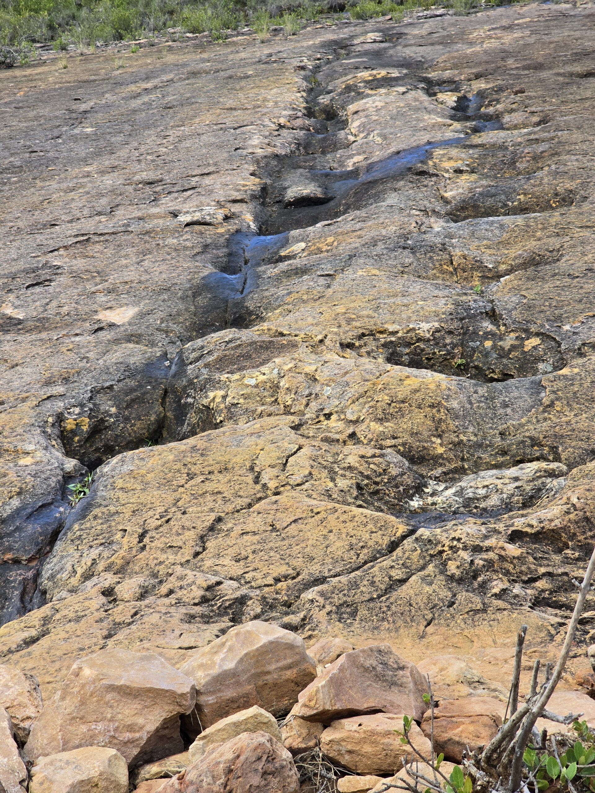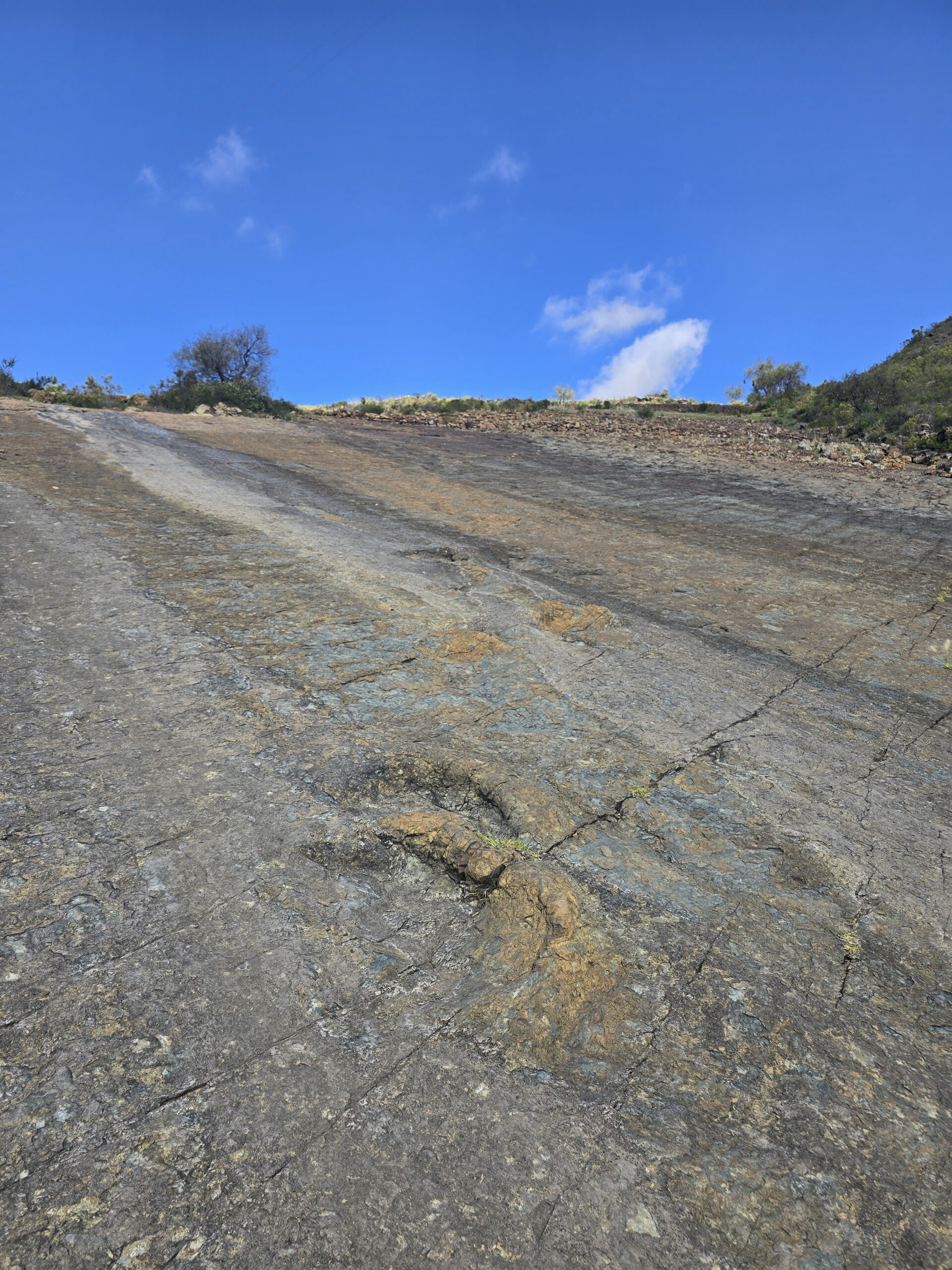 Die Spuren sind wirklich interessant anzusehen, aber deutlich weniger spannend als man sich das vorstellt. Nachdem ich Sie ein wenig bewundert und pausiert hatte ging es weiter mit der zweiten Hälfte des Aufstiegs. Dabei verschwand der Weg dann, sodass ich mit dem Handy in der Hand dem GPS folgen musste und am Ende einfach Straight quer Feldein zur nächsten Straße navigiert habe. Hier hat sich mal wieder gezeigt wie wichtig Offline Karten sind, denn so schön die Treks hier auch sind, sie sind meistens nicht markiert und teilweise sehr schwer zu verfolgen.