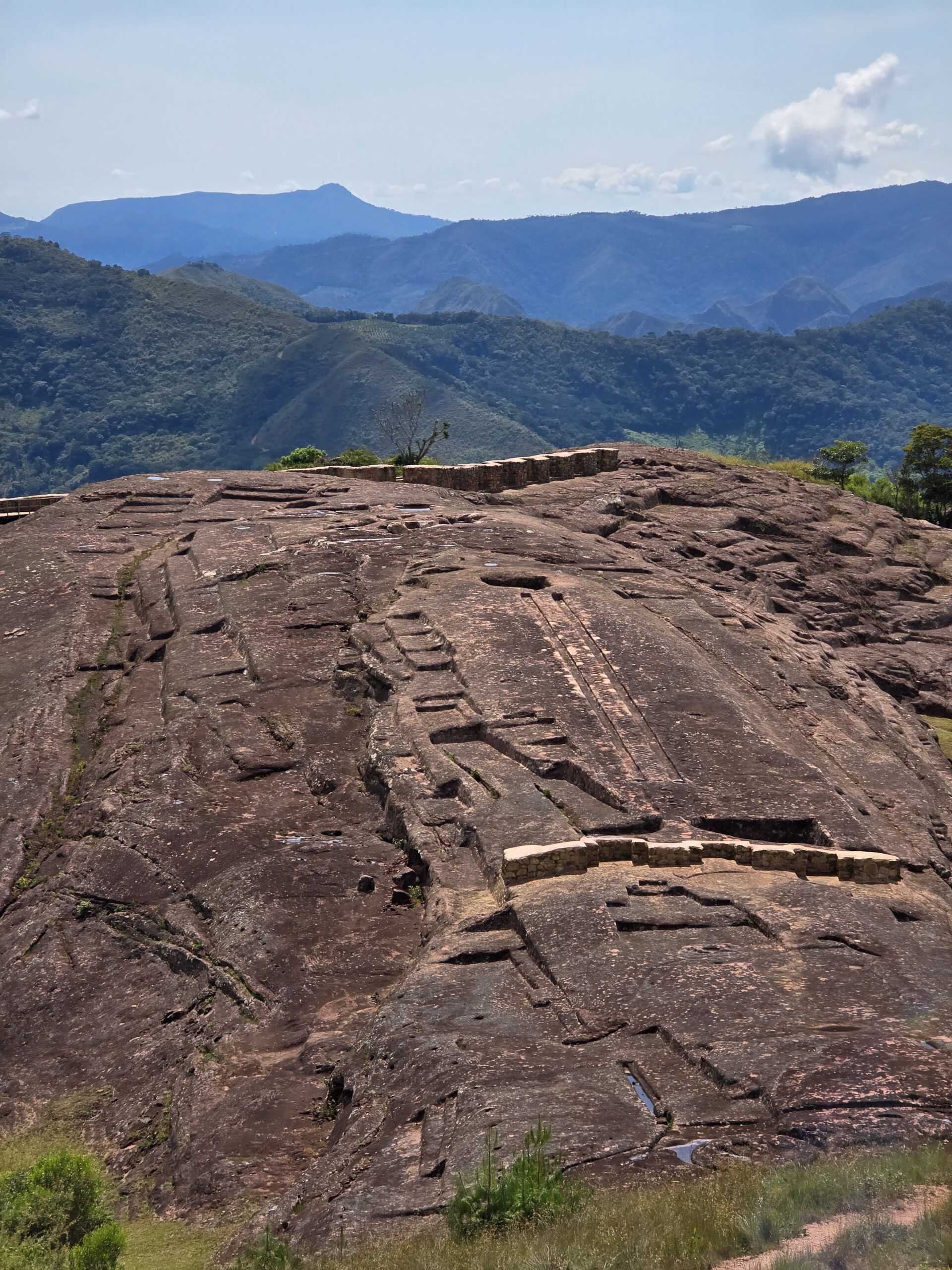Nach einem wieder sehr dürftigen Frühstück, das nur aus zwei Teigtaschen ohne Füllung bestand, ging es gegen 7 Uhr los. Die Wanderung an diesem Tag war länger und ich musste den Bus um 14 Uhr erwischen, um rechtzeitig zum Abendessen mit Remy und Jurrän in Sucre zu sein. Erstmal ging es aus dem Krater hinaus, was schon mal die Hälfte des Anstiegs war. Mein Ziel war es erst an den Dinospuren das erste Mal Pause zu machen. Diese waren hier ungewöhnlich offen zugänglich, keine Zäune, keine Guides, nur eine Frau die 20Bs als Eintritt eingesammelt hat.