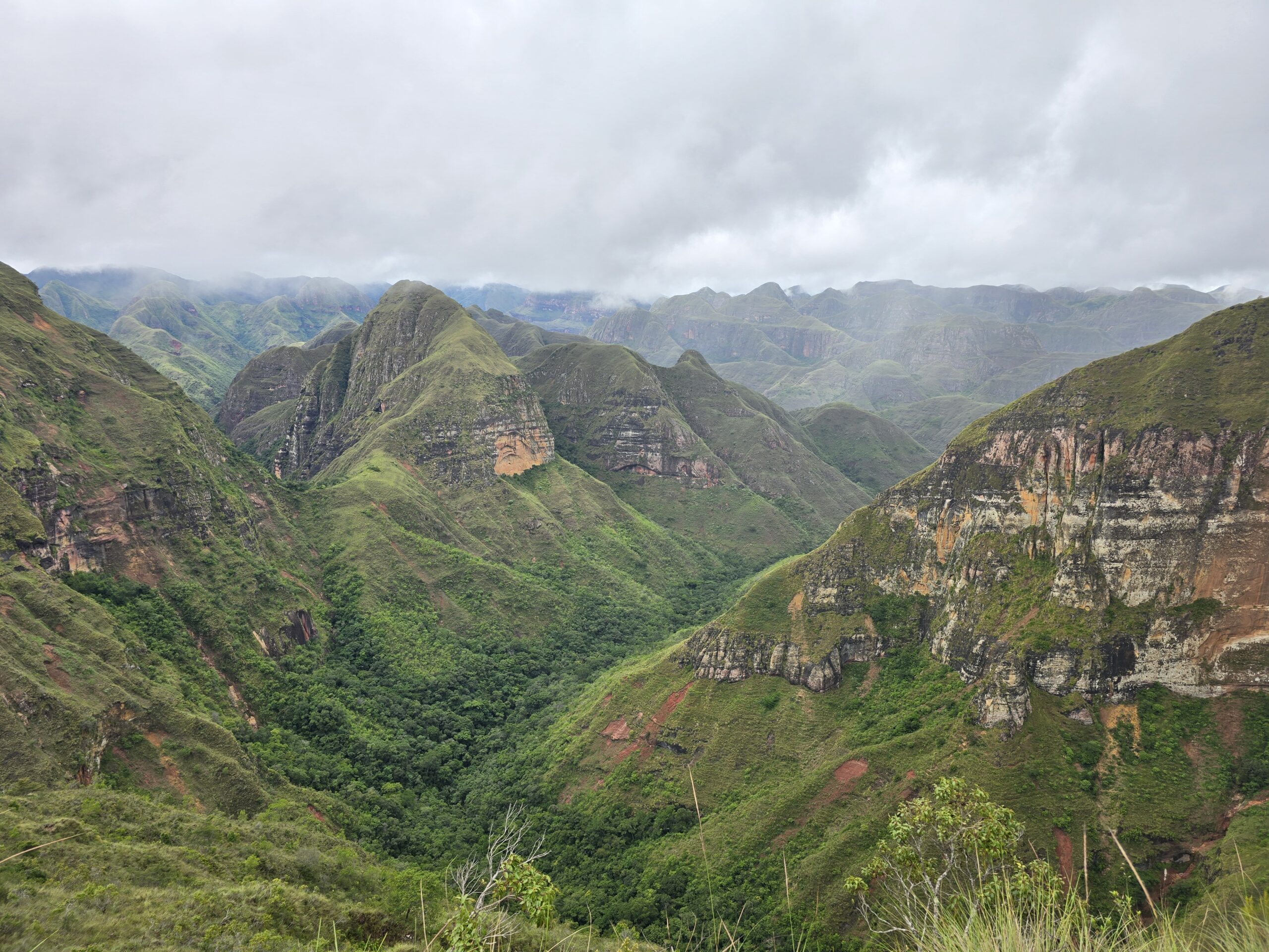 Der Abstieg gestaltete sich dann erst sehr schön und später ein wenig eintönig. Dabei bin ich auch nasser geworden als durch den Regen, denn der Weg ist ziemlich schmal und zugewachsen. Meine Schuhe waren abends immer noch nass, dann gehts halt mit Sandalen in den Bus. Immerhin konnte ich duschen, als ich wieder im Hostel angekommen war! Den Abend habe ich dann damit verbracht, etwas essen zu gehen (seit 1,5 Monaten habe ich nicht mehr gekocht, länger habe ich das, glaube ich, noch nie) und den Beitrag fertig zu schreiben. Gegen 21 Uhr gehts dann zum Bus, wir hören uns wieder aus Sucre! 🙂
