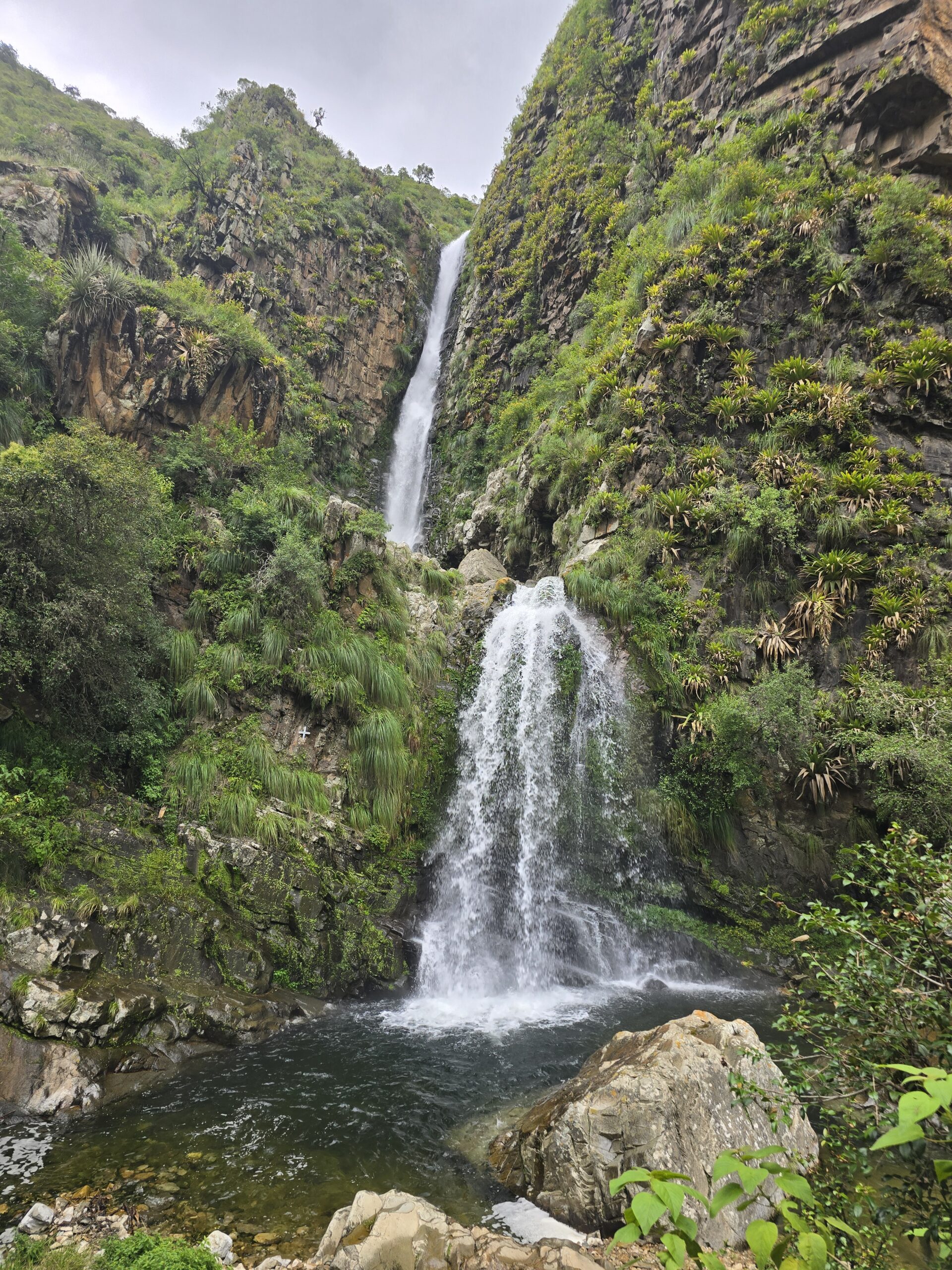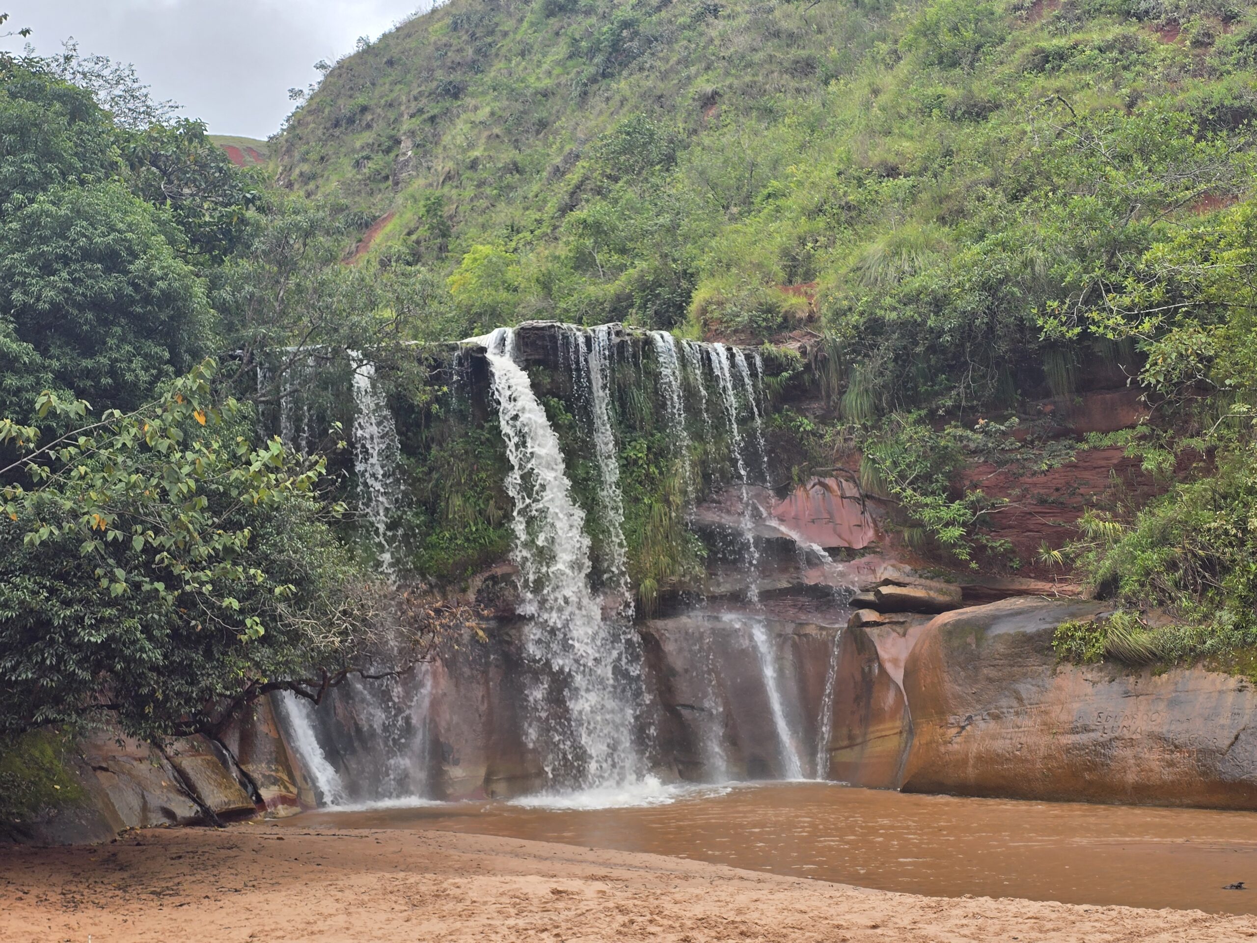 Das haben wir dann auch gemacht und noch einen Amerikaner mitgenommen den wir am Vortag kennengelernt hatten. Leider hatte es sich etwas zugezogen, doch der Taxifahrer meinte es würde nicht Regnen. Eine grobe Fehleinschätzung wie sich wenig später herausstellen würde. Erstmal mussten wir aber noch gut eine halbe Stunde durch doch relativ unwegsames Gelände zum Wasserfall wandern, von dem Punkt wo uns der Taxifahrer abgesetzt hat.