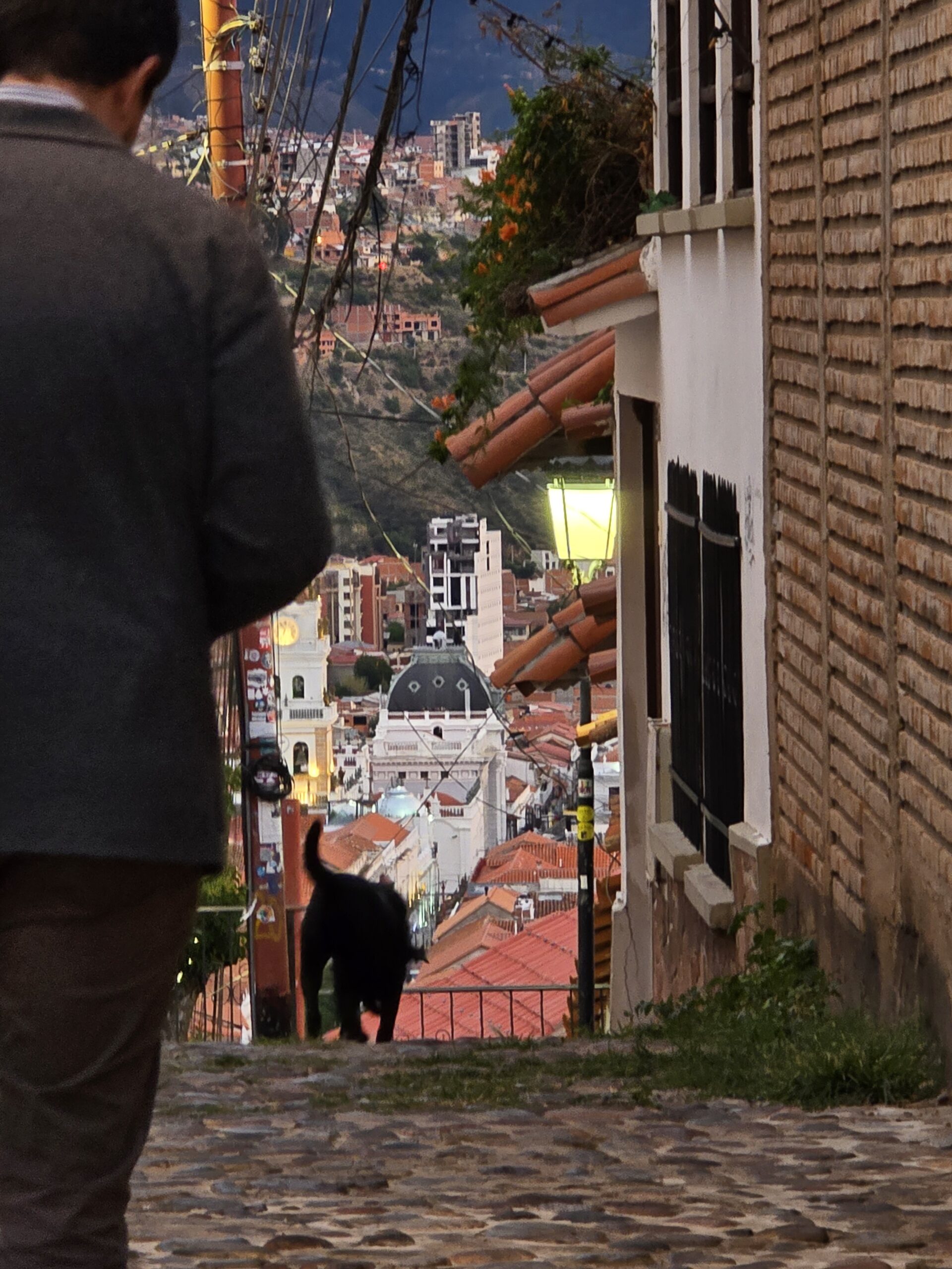 Remy hatte sich für heute eine Wanderung zur Akklimatisierung für die Bergtour gebucht, die ab Morgen anstand. Ich dachte mir, da ich schon über eine Woche in La Paz bin, brauche ich das nicht. Also ich bin ein letztes Mal zum Spanisch-Kurs, danach Mittag und eine Runde Chillen. Für den Nachmittag hatte ich mir dann vorgenommen, zu einem Aussichtspunkt mitten in der Stadt zu gehen.