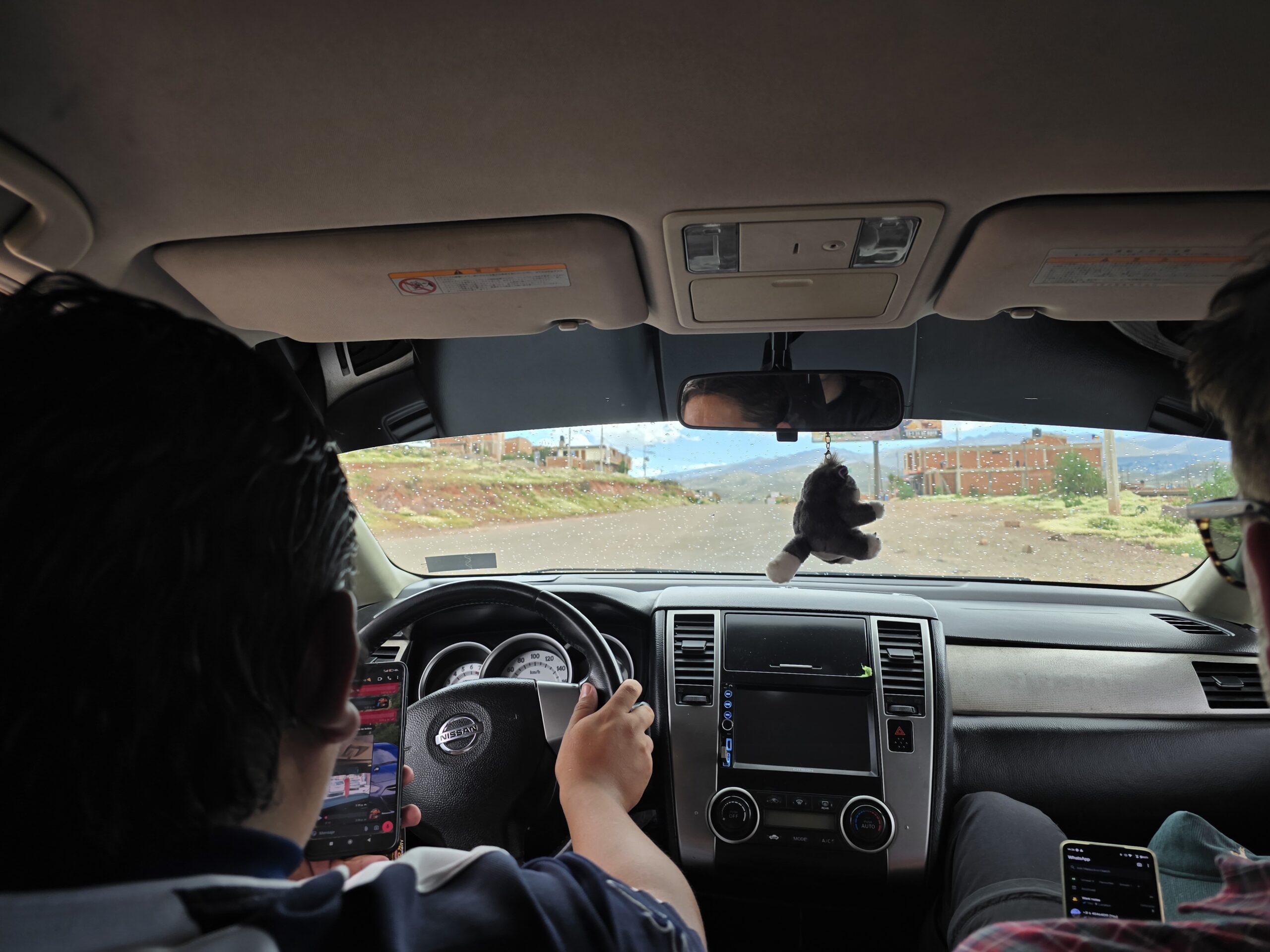 Kurze Zeit später ging es auch schon los Richtung Potosí. Diesmal tatsächlich nicht mit dem Bus, sondern mit einem privaten Taxi. Das war nämlich nur 1,5€ teurer pro Person als der Bus. Die Verhandlung war aber komplett wild. 5 Leute standen am Beifahrerfenster und haben auf Jurrän eingeredet. Leider waren wir alle so Baff, dass es keiner gefilmt hat. Die Fahrt war jetzt nicht wirklich angenehmer als in einem Bus, da wir uns mit vier Leuten und dem ganzen Gepäck in das Auto zwängen mussten.