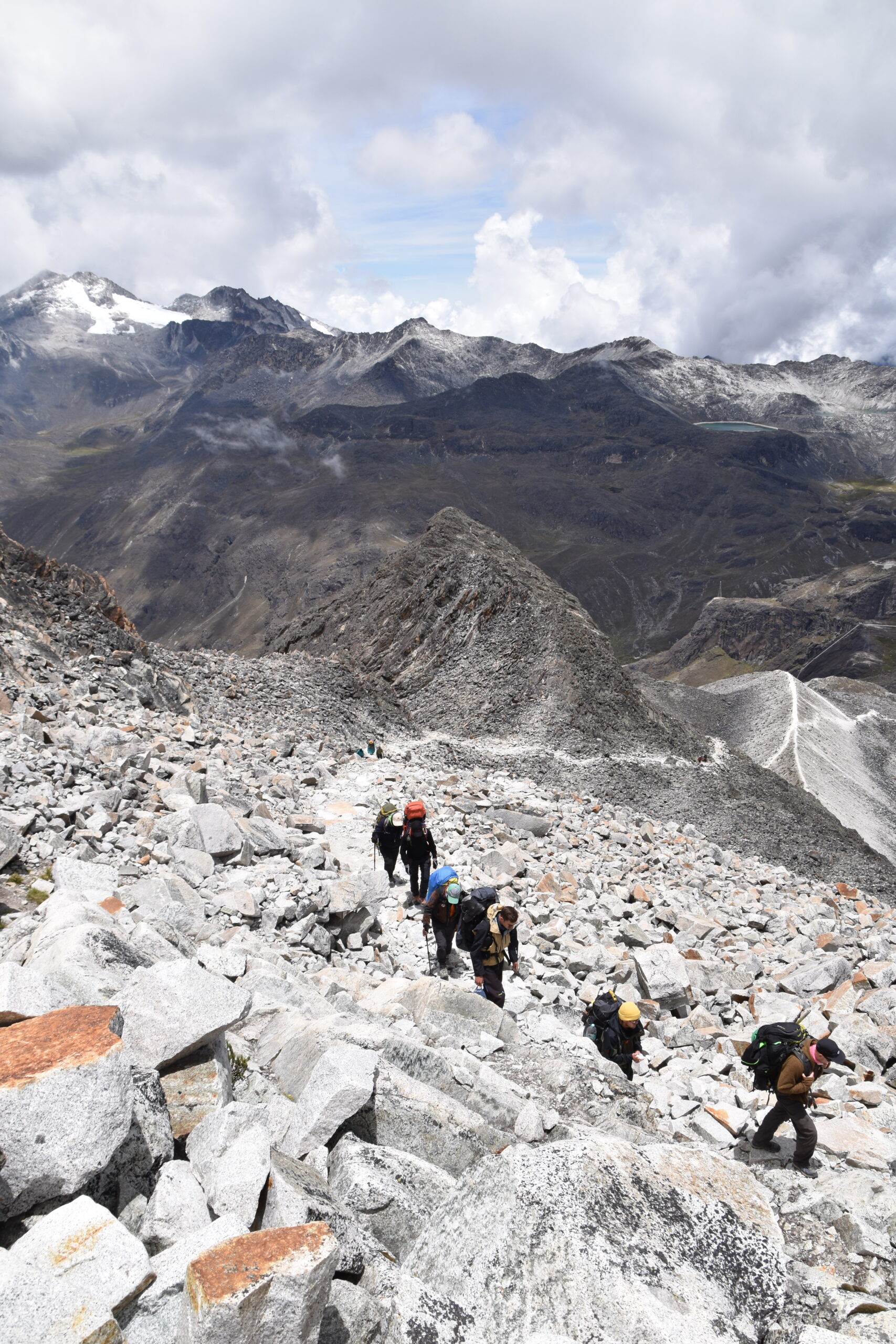 Dieser Tag war auch wieder recht entspannt, da der Aufstieg erst nach dem Mittagessen starten sollte, sonst würde man sich oben mit der Gruppe vom Vortag in die Quere kommen. Nach dem Mittag ging es als mit dem ganzen Gepäck los. Müsste ich schätzen würde ich sagen gut 15Kg, mit allem drum und dran. Wir starteten auf 4700m und musste auf 5300m aufsteigen. Das war schon mal gut anstrengend, es sind zwar nie die Bomber strecken oder Höhenmeter, aber die Luft in dieser Höhe ist dann doch schon bedeutend dünner als in den Alpen.