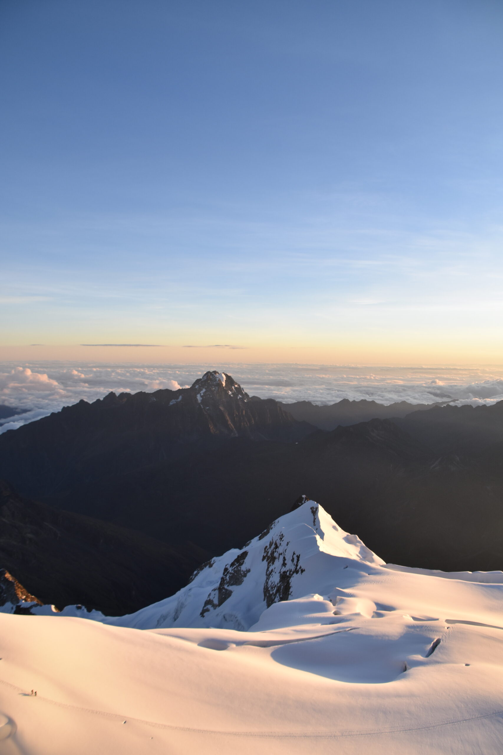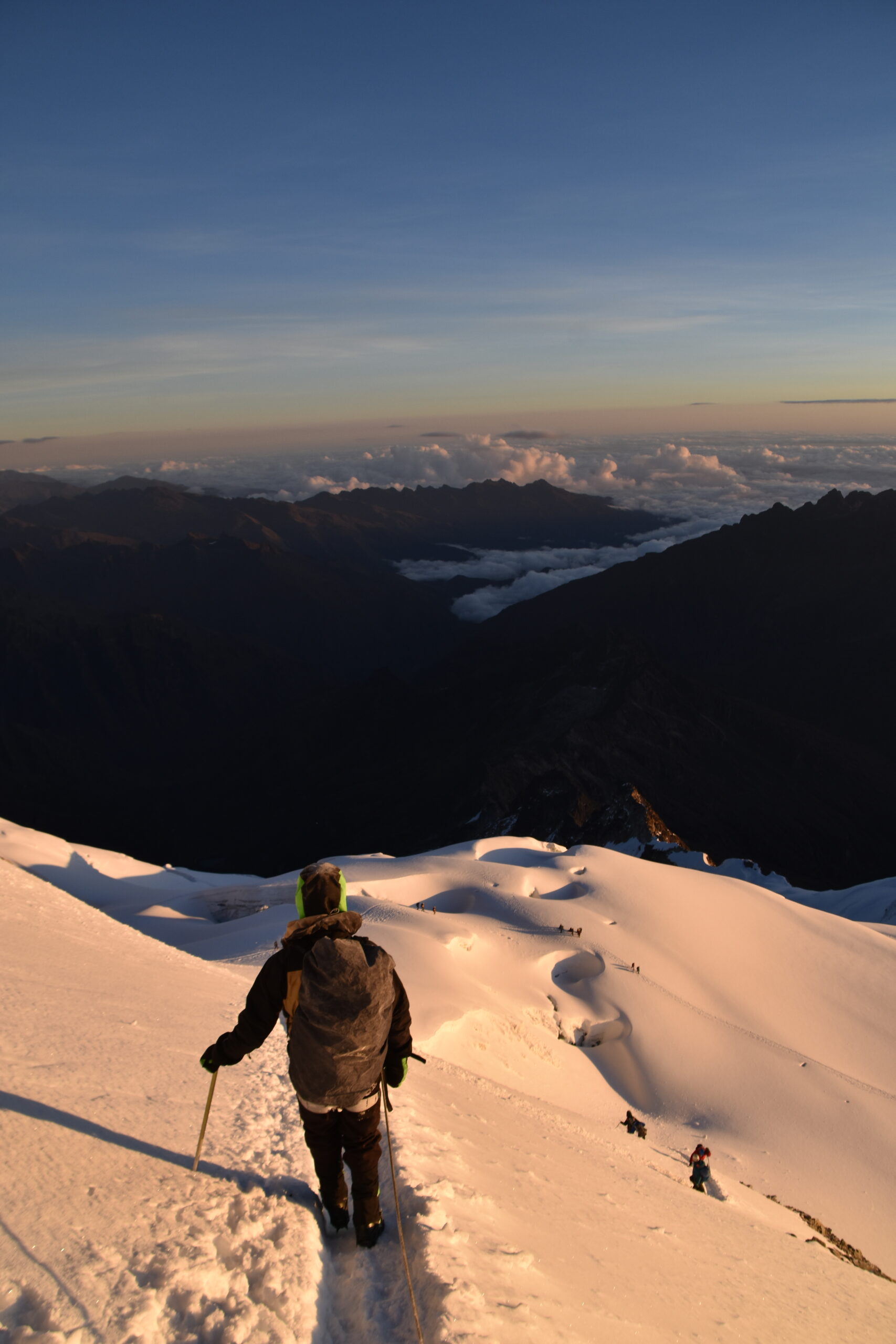Auf etwas der Hälfte der Strecke kam dann die Eiswand. Es ging zwar nicht 90°, aber doch bestimmt 60° nach oben und das für gut 40m. Die Guides klettern da ohne Sicherung hoch und sichern die Gruppen, die in einem Hochklettern, dann von oben ab. Hat man es nicht selber gemacht, kann man sich nicht vorstellen, wie anstrengend das ist. Die Luft auf 5700m ist so dünn, dass man wirklich jeden Atemzug genau kontrollieren muss, damit man genügend Luft bekommt.