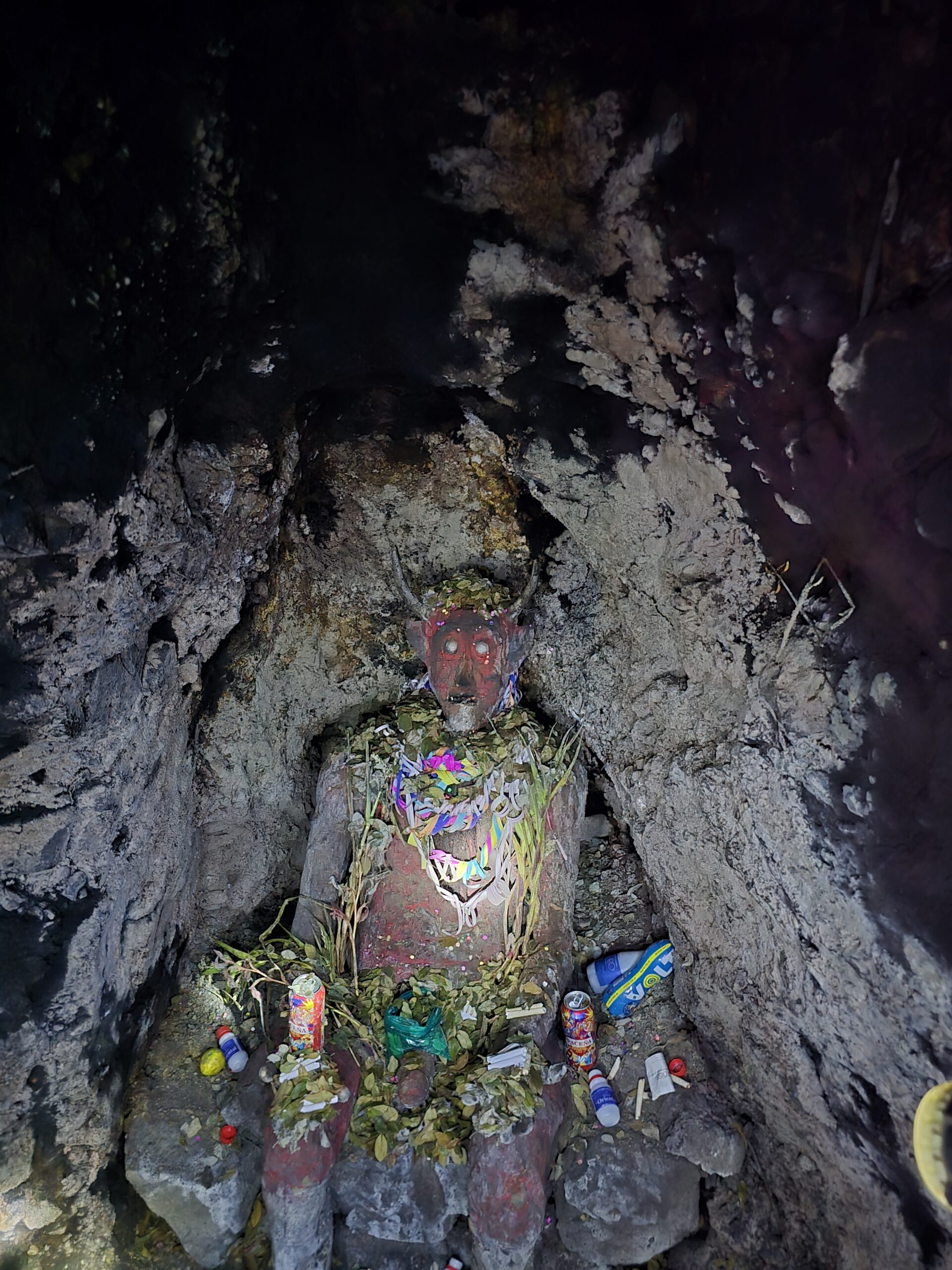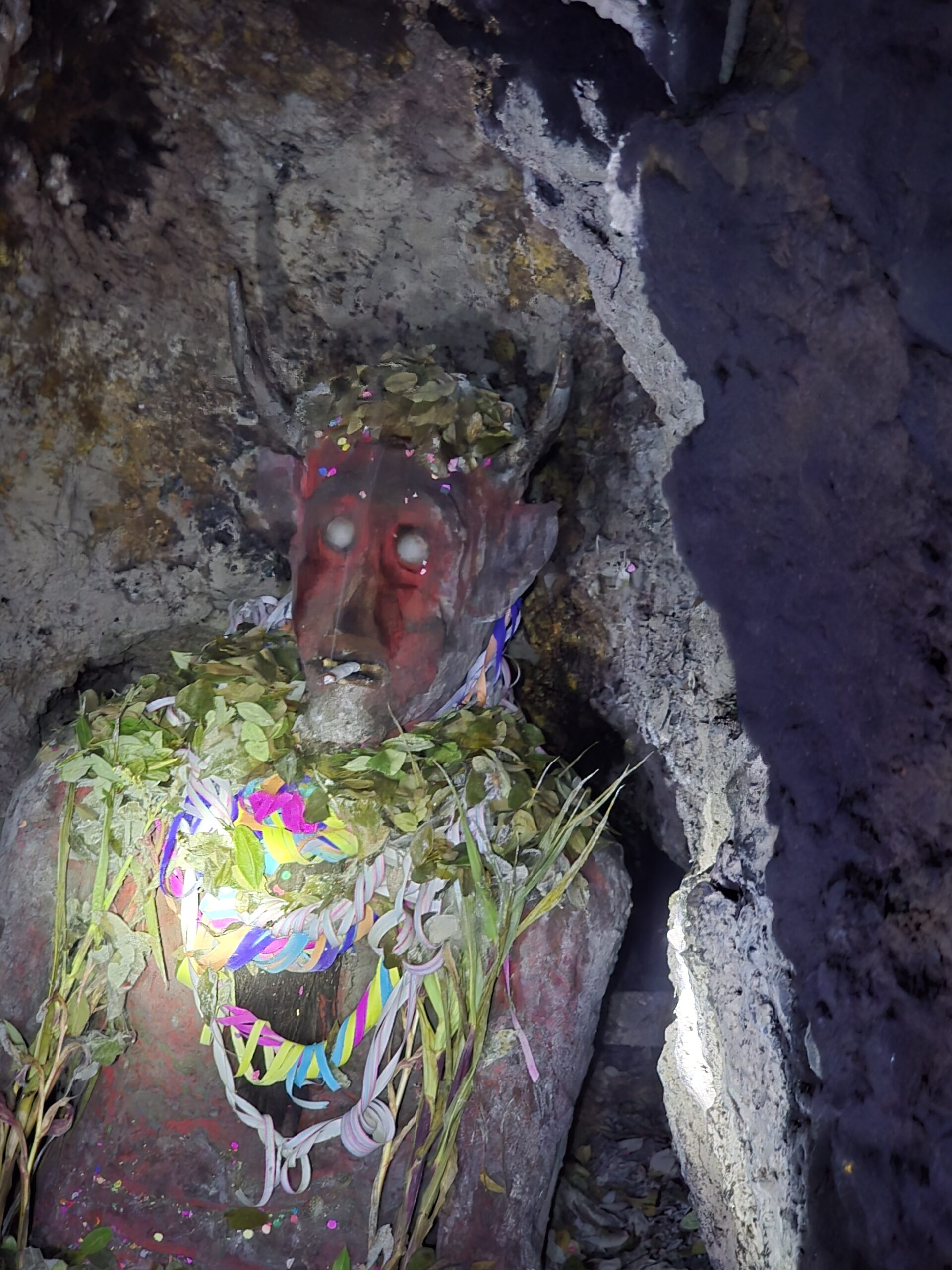 Die Bedingungen in der Mine sind wirklich unglaublich. Es ist eng, stickig, staubig und so richtig sicher sieht das auch alles nicht aus. Der Guide sagte die meisten Arbeiter sterben mit 50 an Staublungen, verdienen bis dahin aber das Dreifache des Mindestlohnes und Unfälle gibt es nur in den illegalen Minen, so richtig glaube konnte ich den letzten Part nicht. Nachdem wir die zweite Hälfte des Sprengstoffs in der Mine haben hochgehen lassen, und ich sage euch das knallt richtig, haben wir dem Tio unsere Opfergaben gebracht.