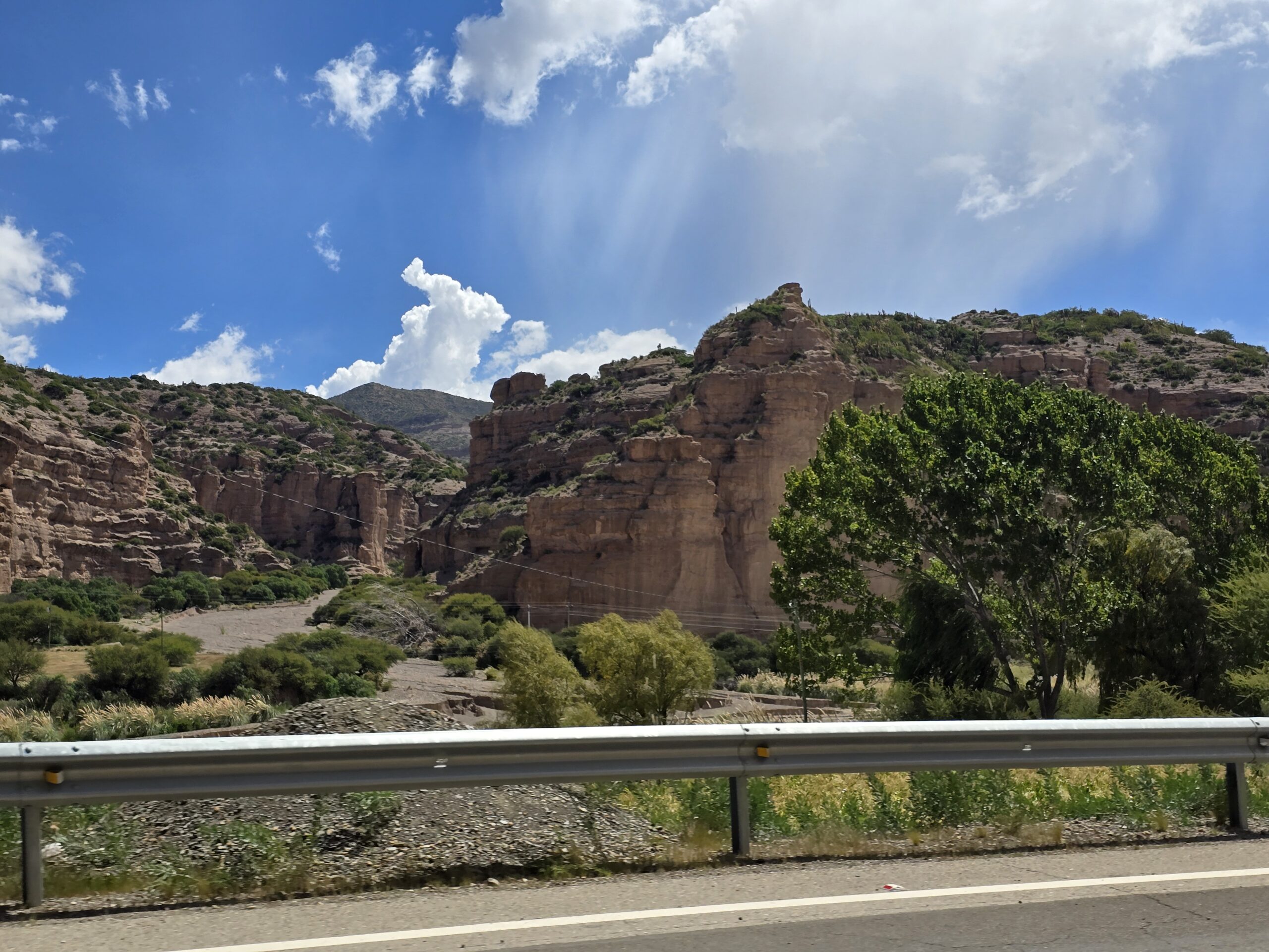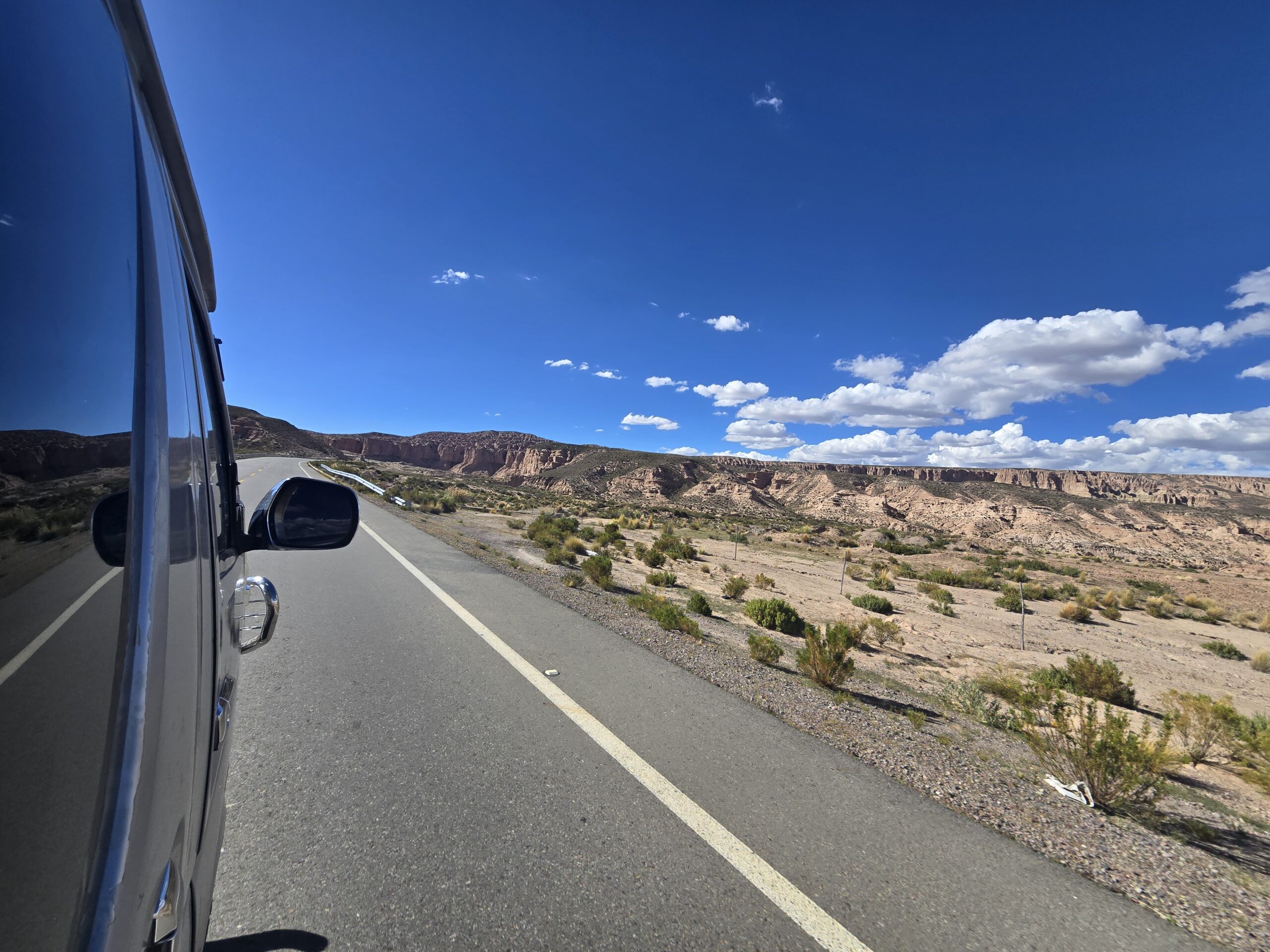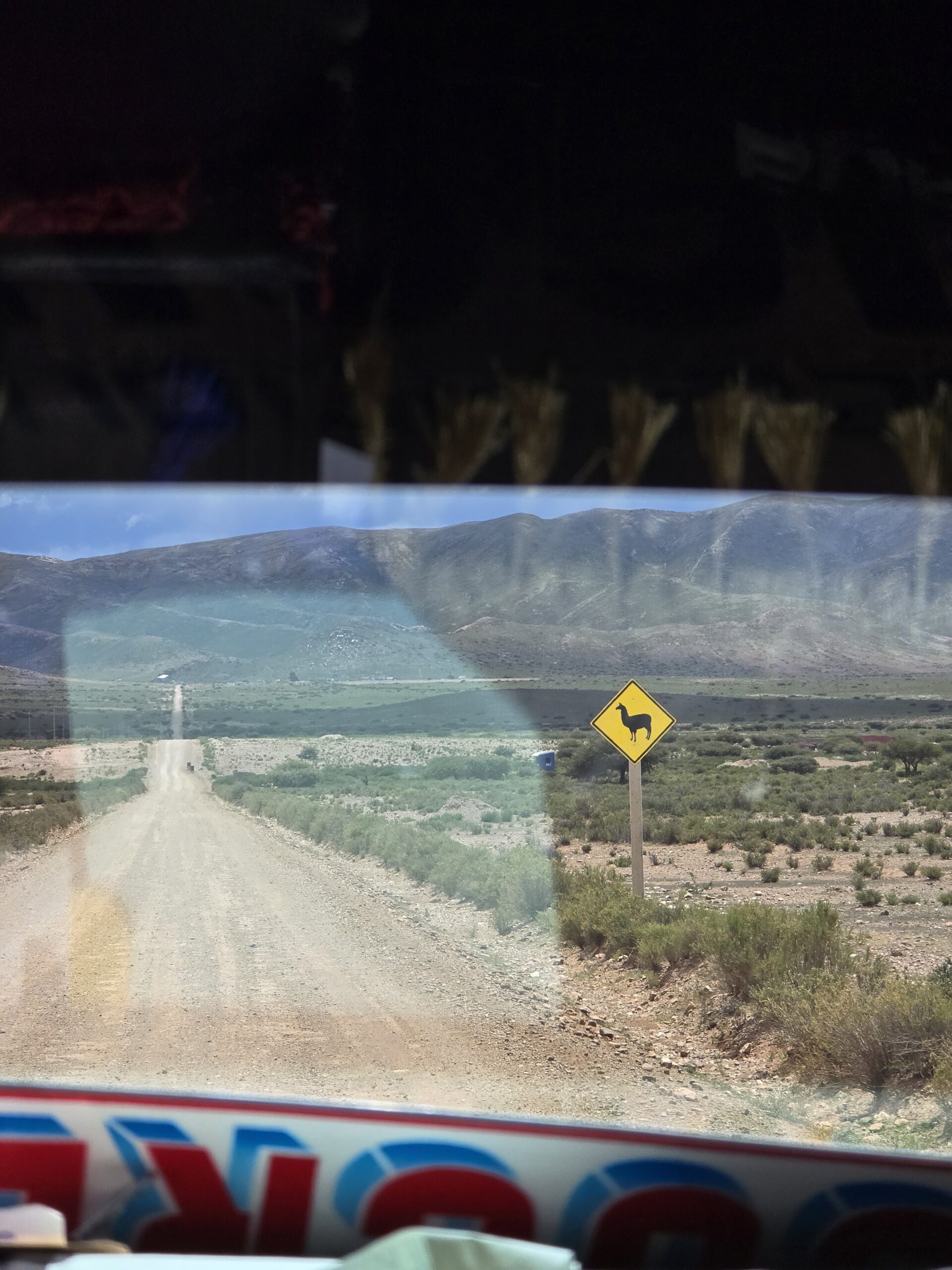 Der Minibus sollte um 8 Uhr losfahren, also haben wir gegen 7:30 ein Taxi zum Abfahrtspunkt genommen. Natürlich hat es dann noch bis gut 9 Uhr gedauert bis wir losgekommen sind, was auch sonst. Na gut, dann ging es endlich los, es sollte 8 Stunden dauern und wirklich viel Platz hatten wir in dem Bus nicht. Trotzdem besser als die Alternative, die hätte 20h mit Wartezeit mitten in der Nacht in Tupiza gedauert und hätte fast das Gleiche gekostet.