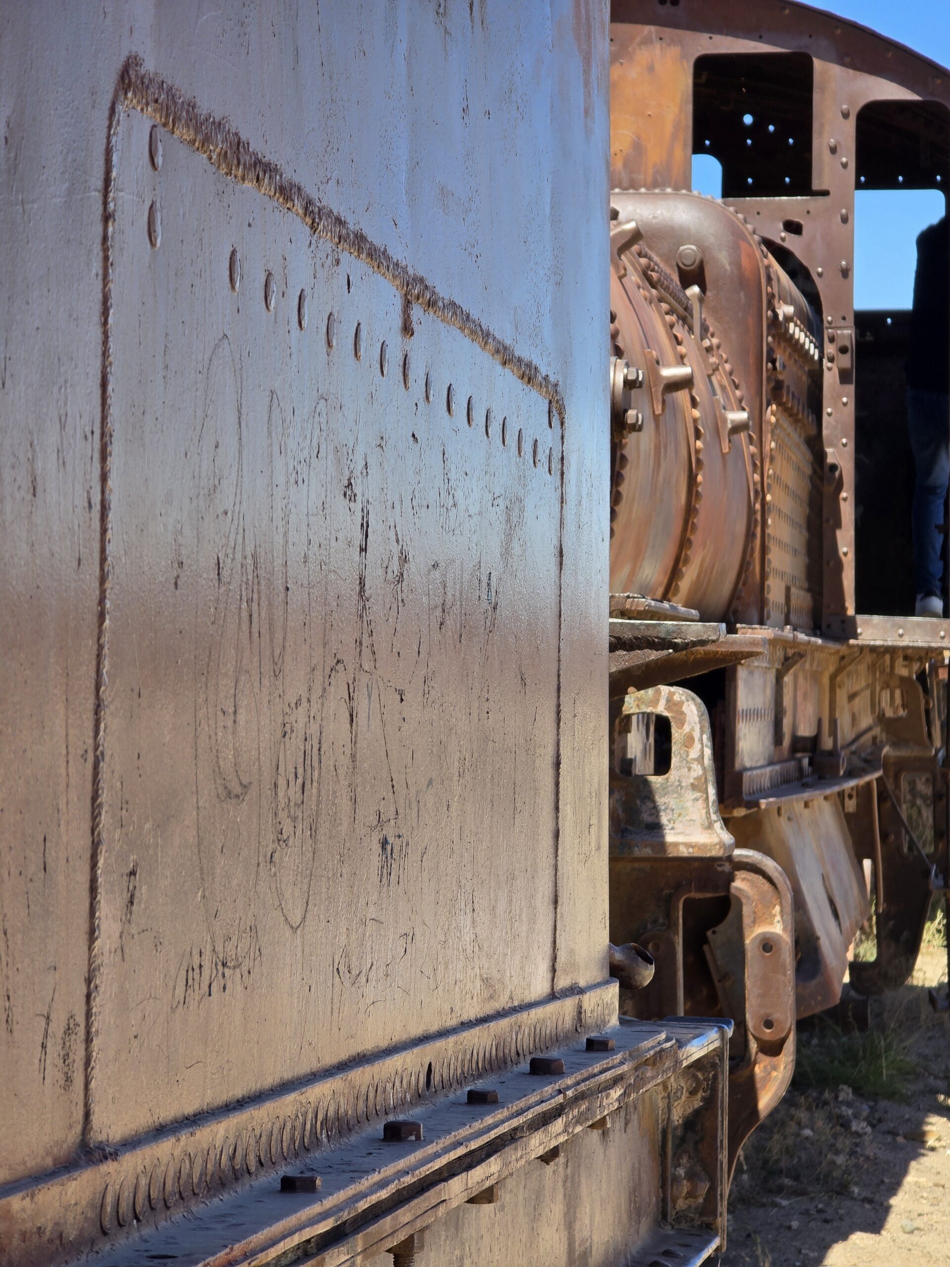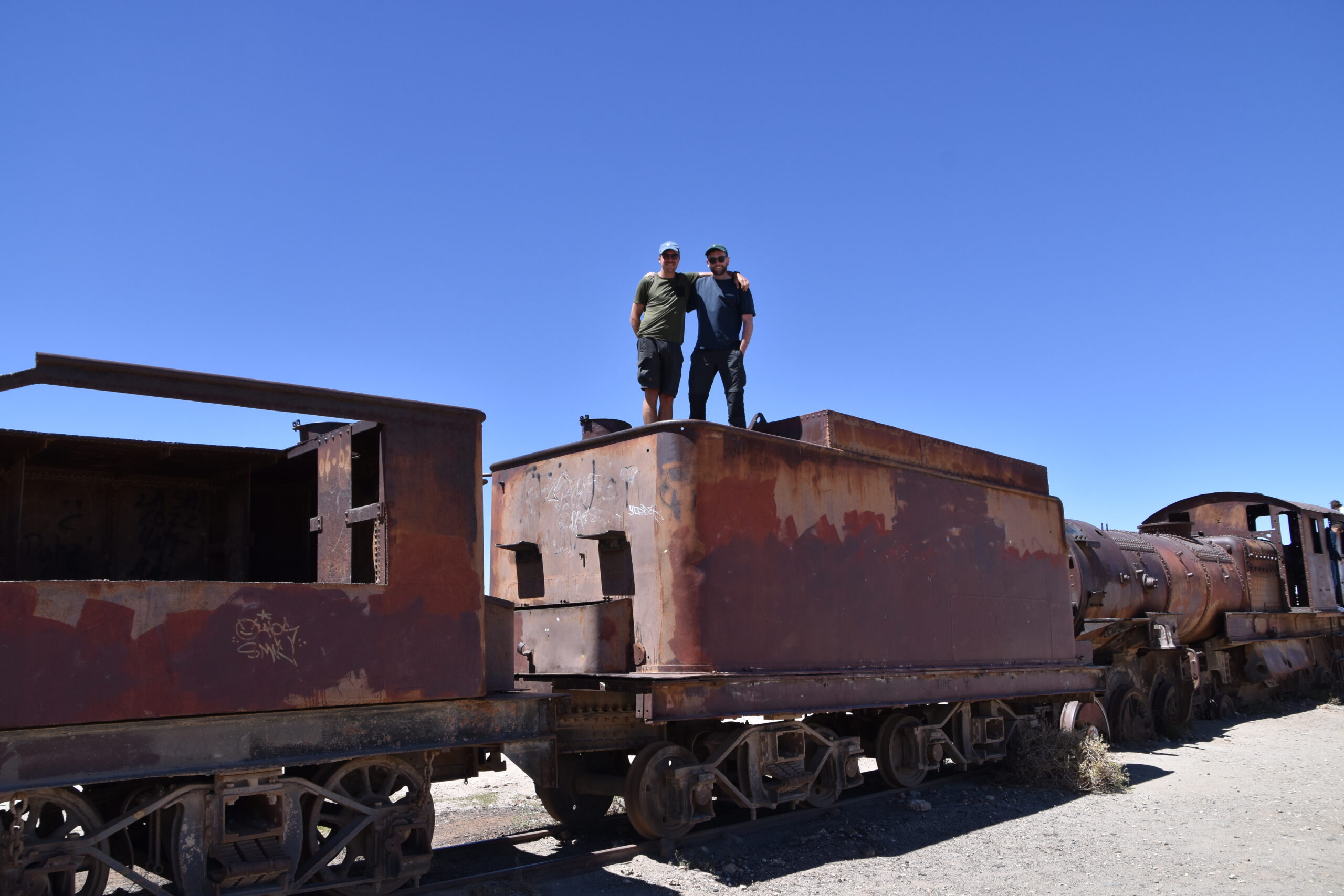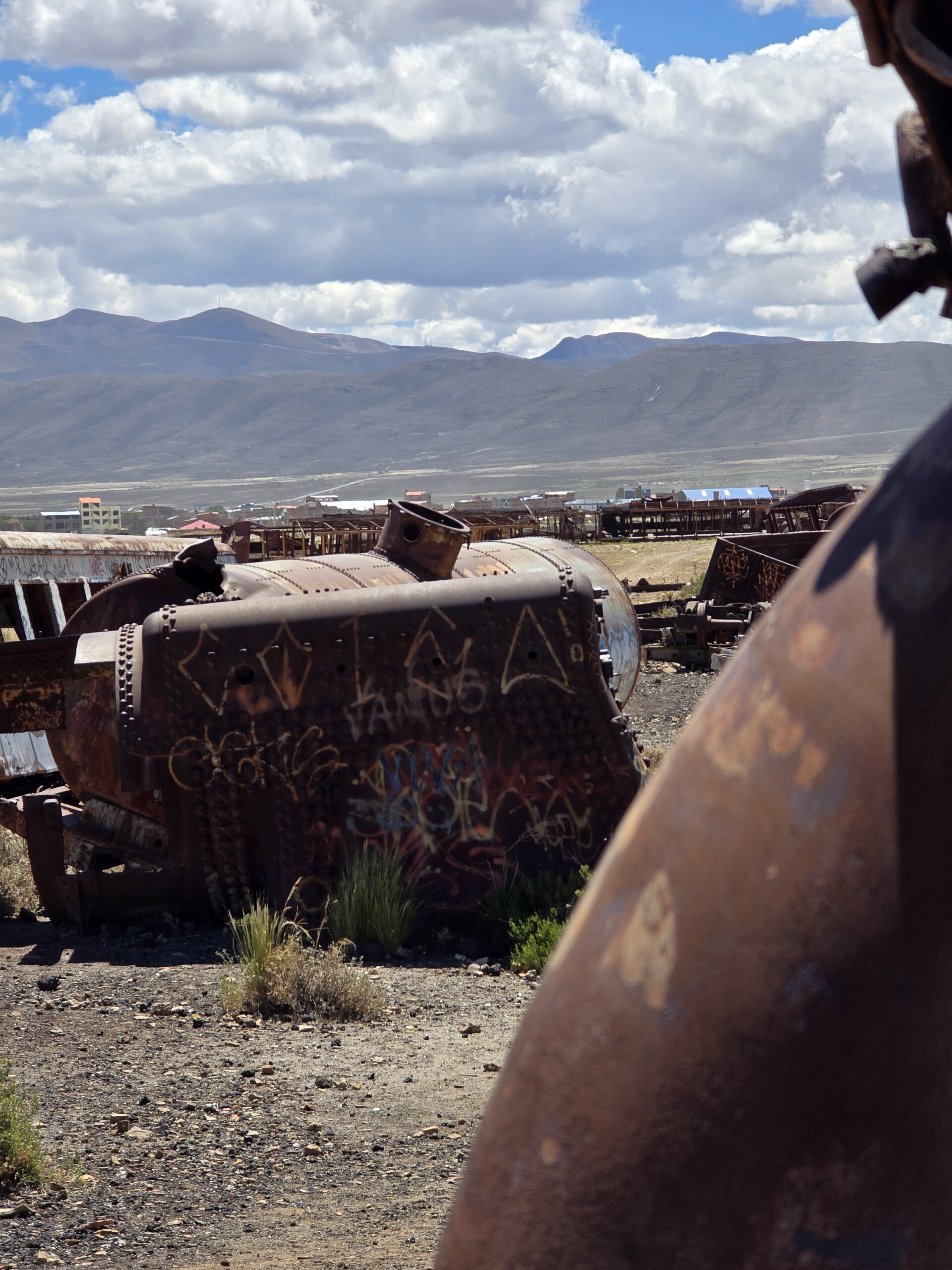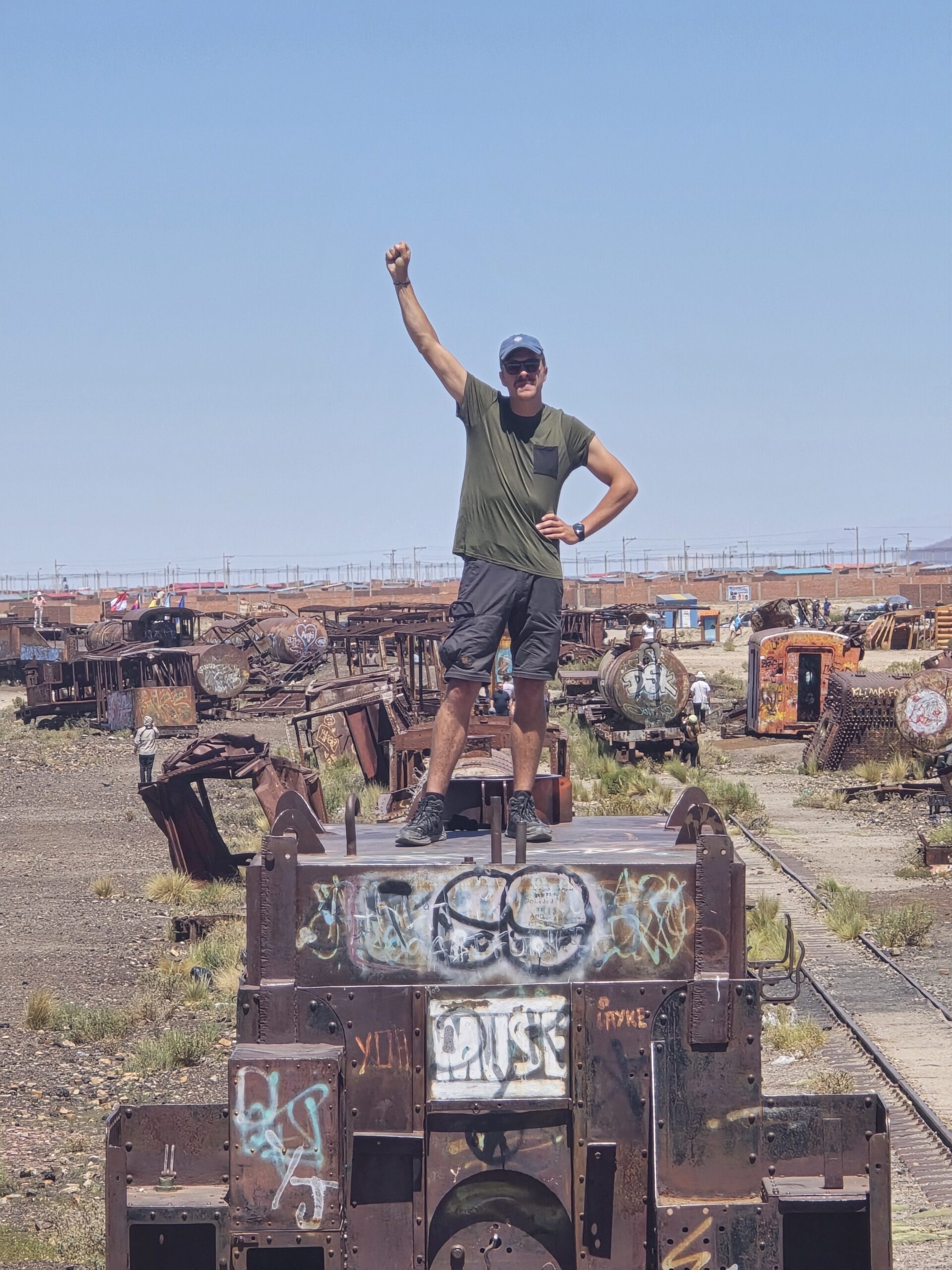 Hier war es leider sehr voll, das versaut mir immer ein bisschen die Erfahrung, wie z. B. auch in Machu Picchu. Wir sind dann ein bisschen weiter in das Gebiet hineingelaufen, um etwas mehr für uns zu sein. Die Eisenbahnlinien führen nach Chile an die Küste. Diese wurden nach dem Krieg zwischen Chile und Bolivien gebaut, als Bolivien seine Küste verloren hat. Früher wurde hier alles Transportiert, auch Menschen. Heute wird aber nur noch Fracht transportiert, da neue Straßen gebaut wurden auf denen die Menschen transportiert werden.