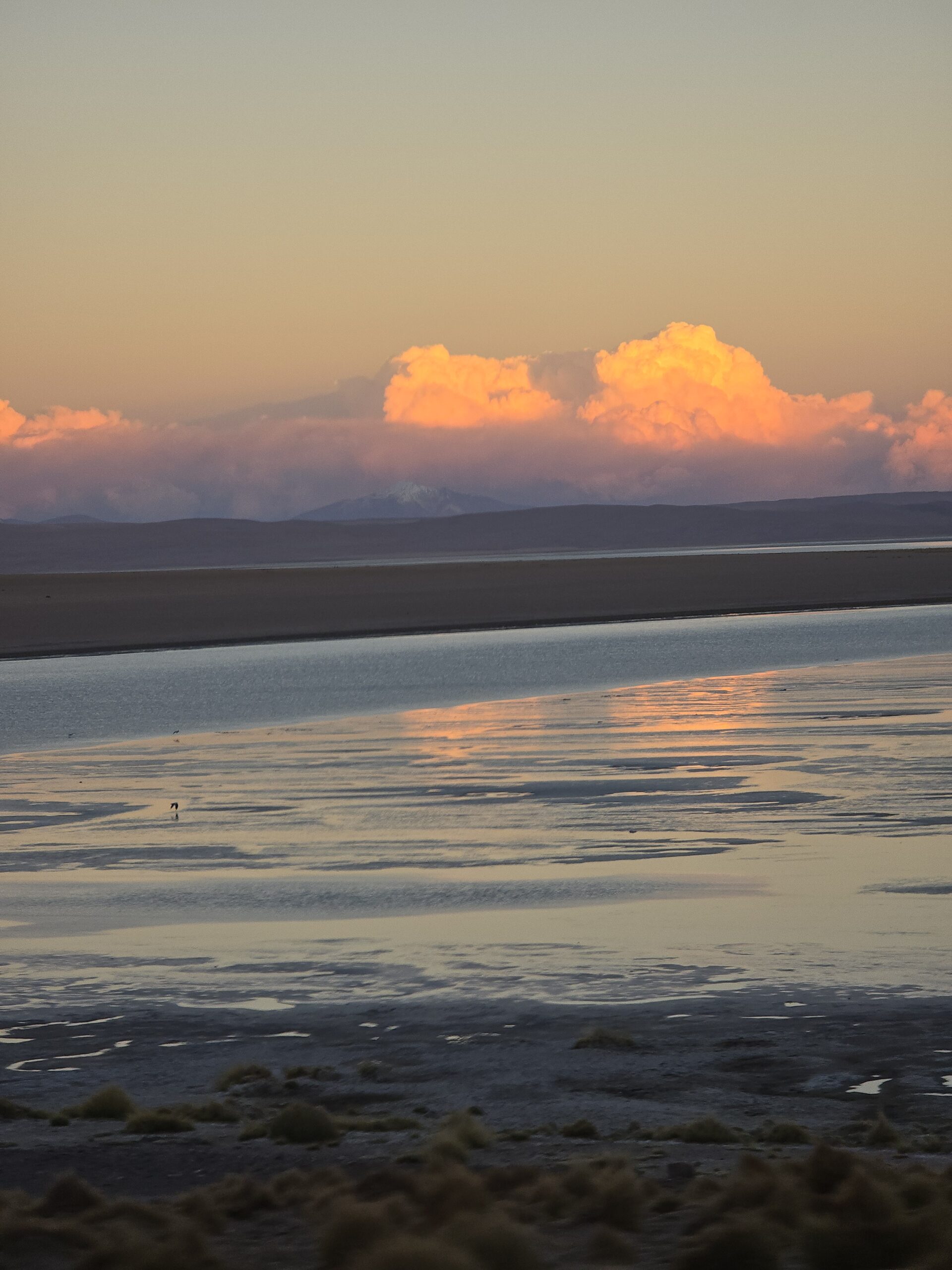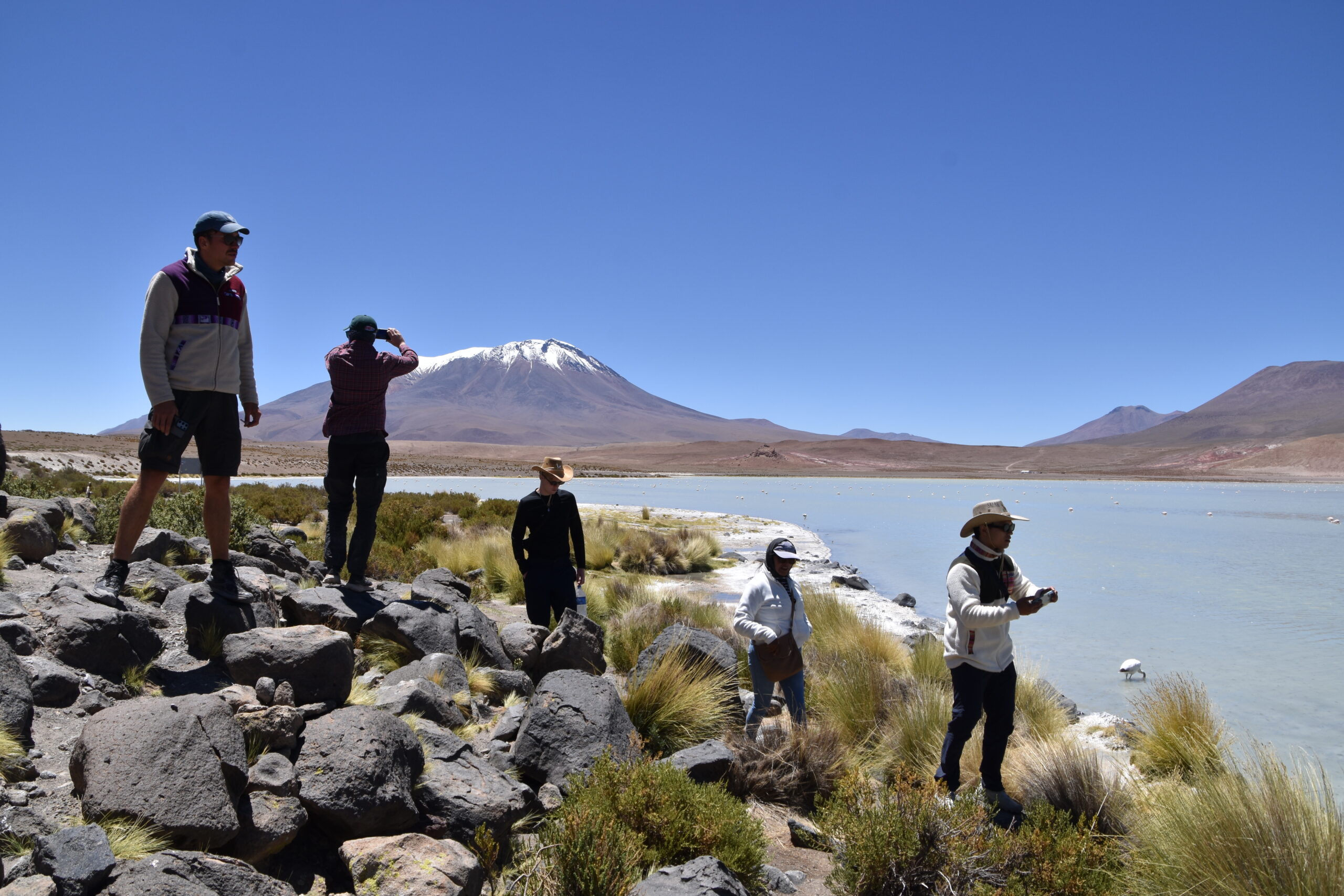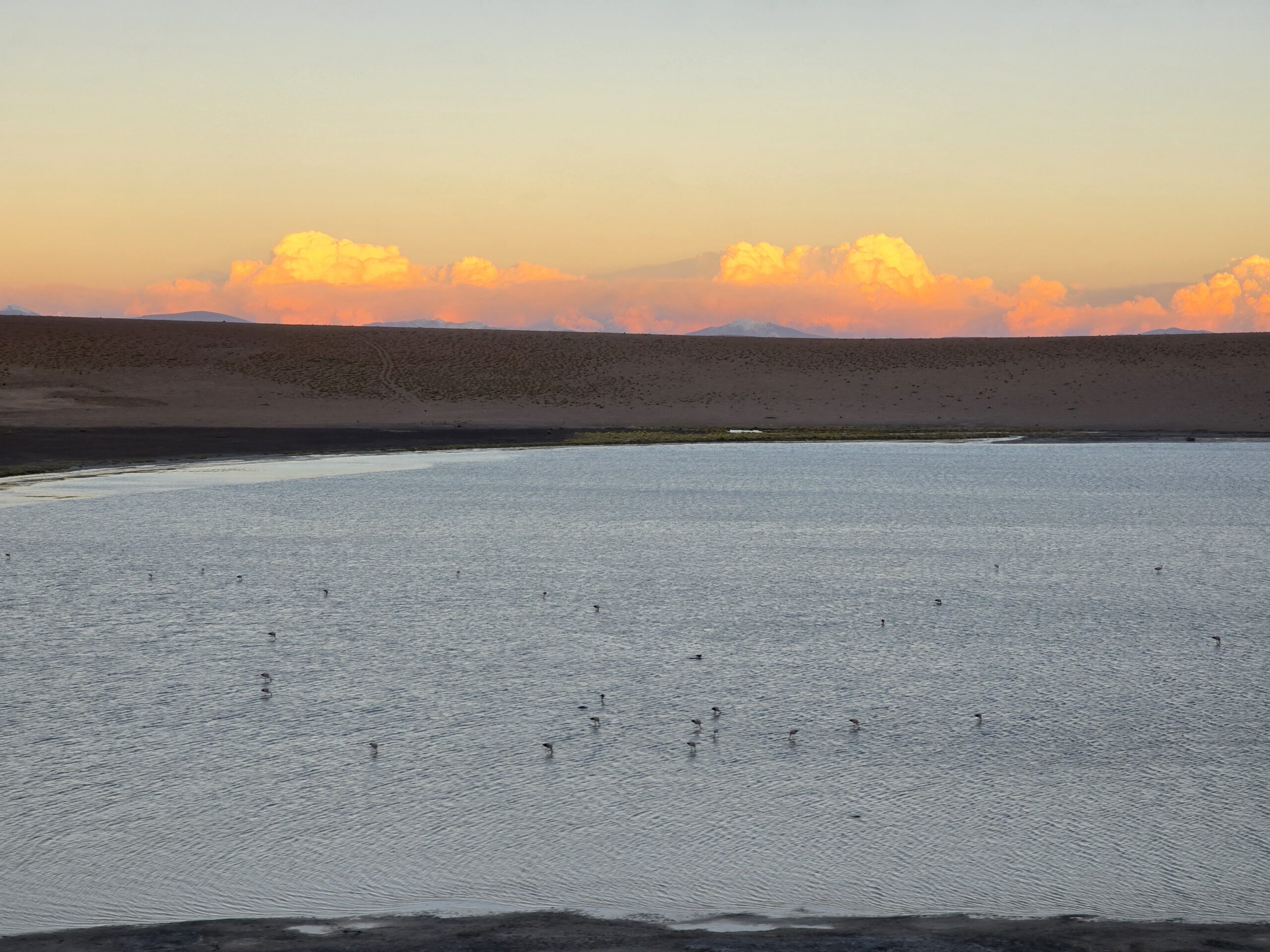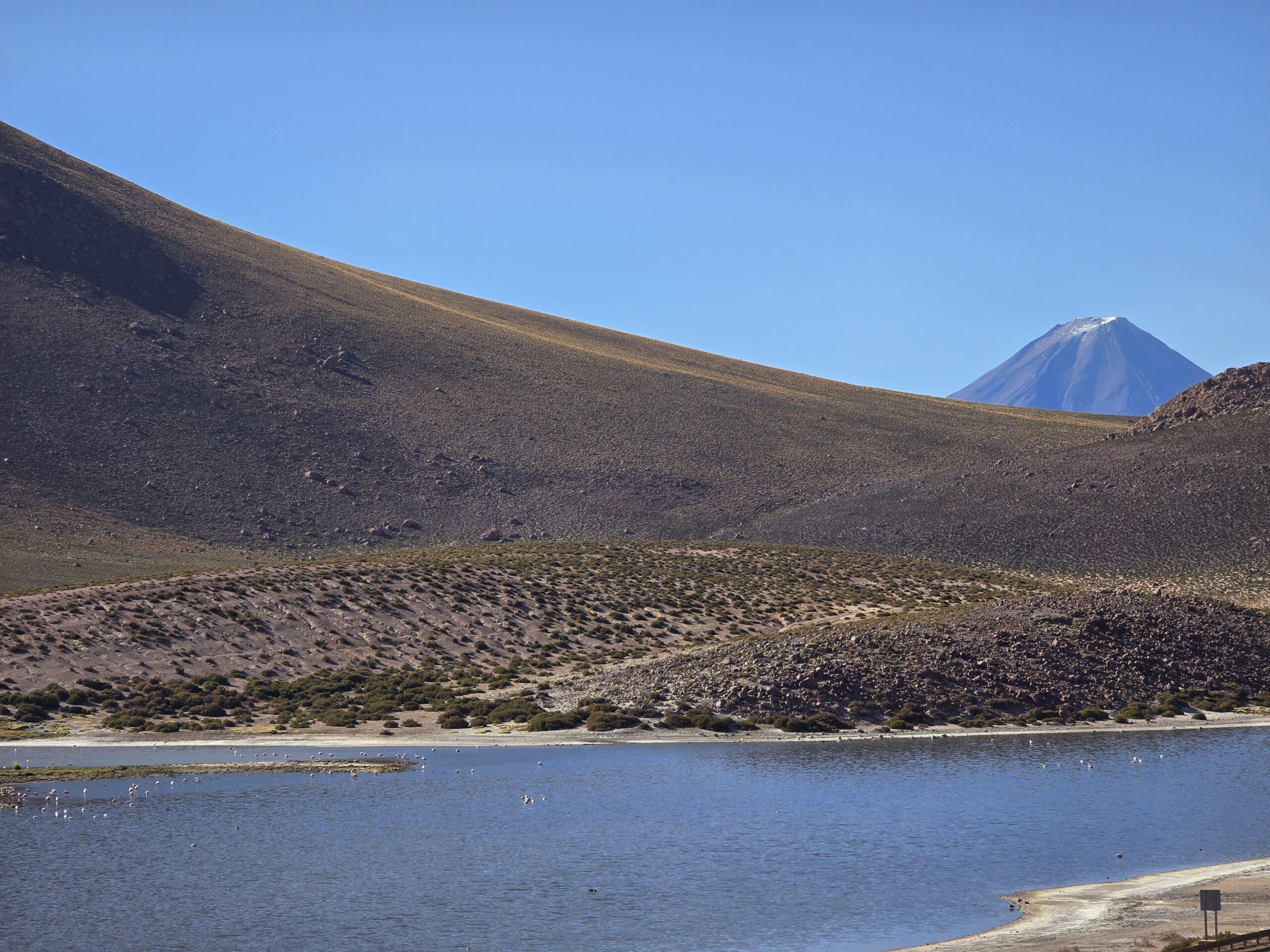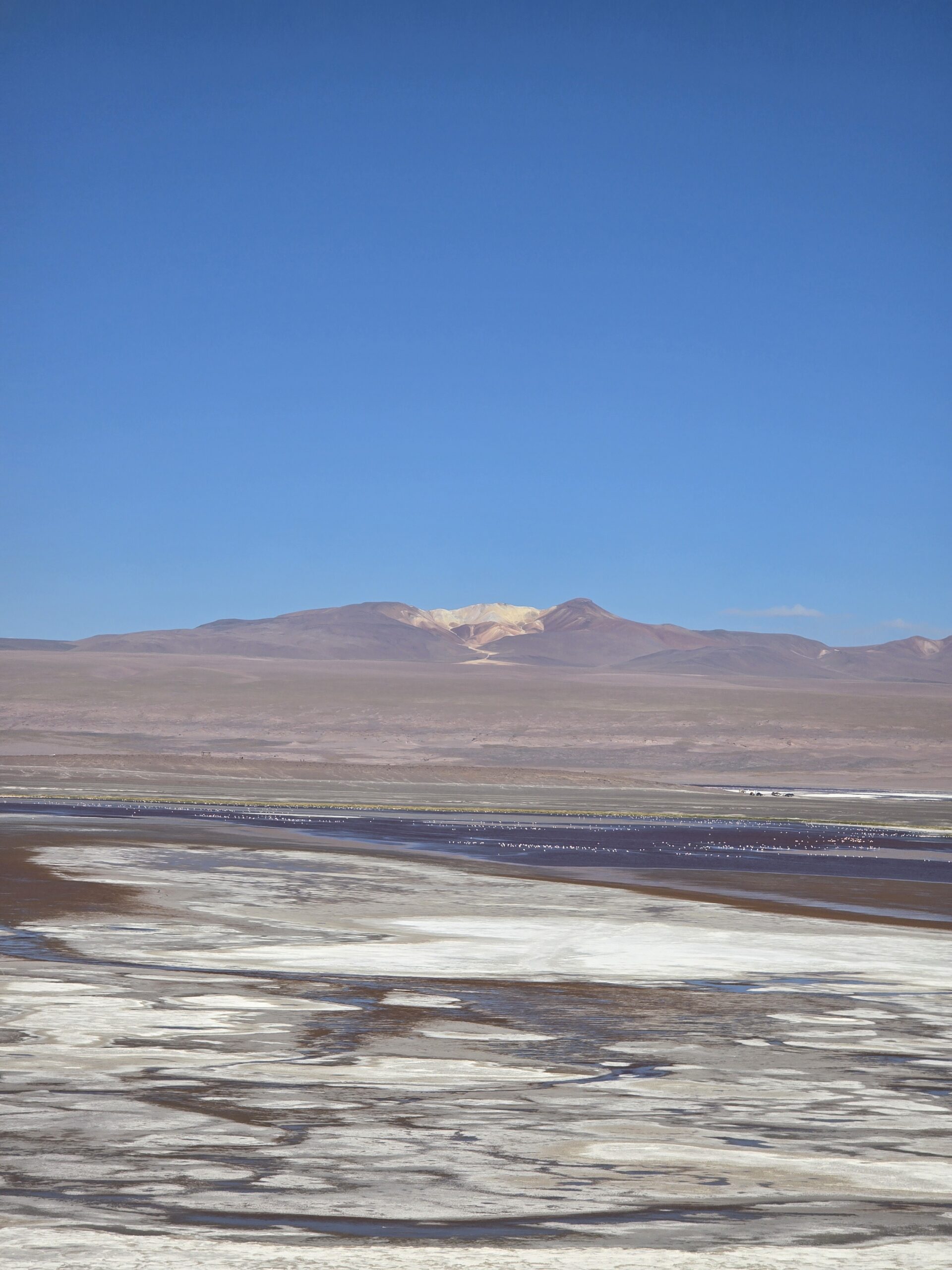 Danach ging es weiter zu den Lagunen, an der ersten waren nur ein paar Flamingos zu sehen. An der zweiten dafür Tausende! Die Flamingos leben das ganze Jahr hier und Migrieren nur zwischen Chile und Bolivien hin und her. Nachdem wir die Vögel ein bisschen bewundert und Fotos gemacht hatten, ging es zum Mittagessen mit Ausblick über die Lagune.