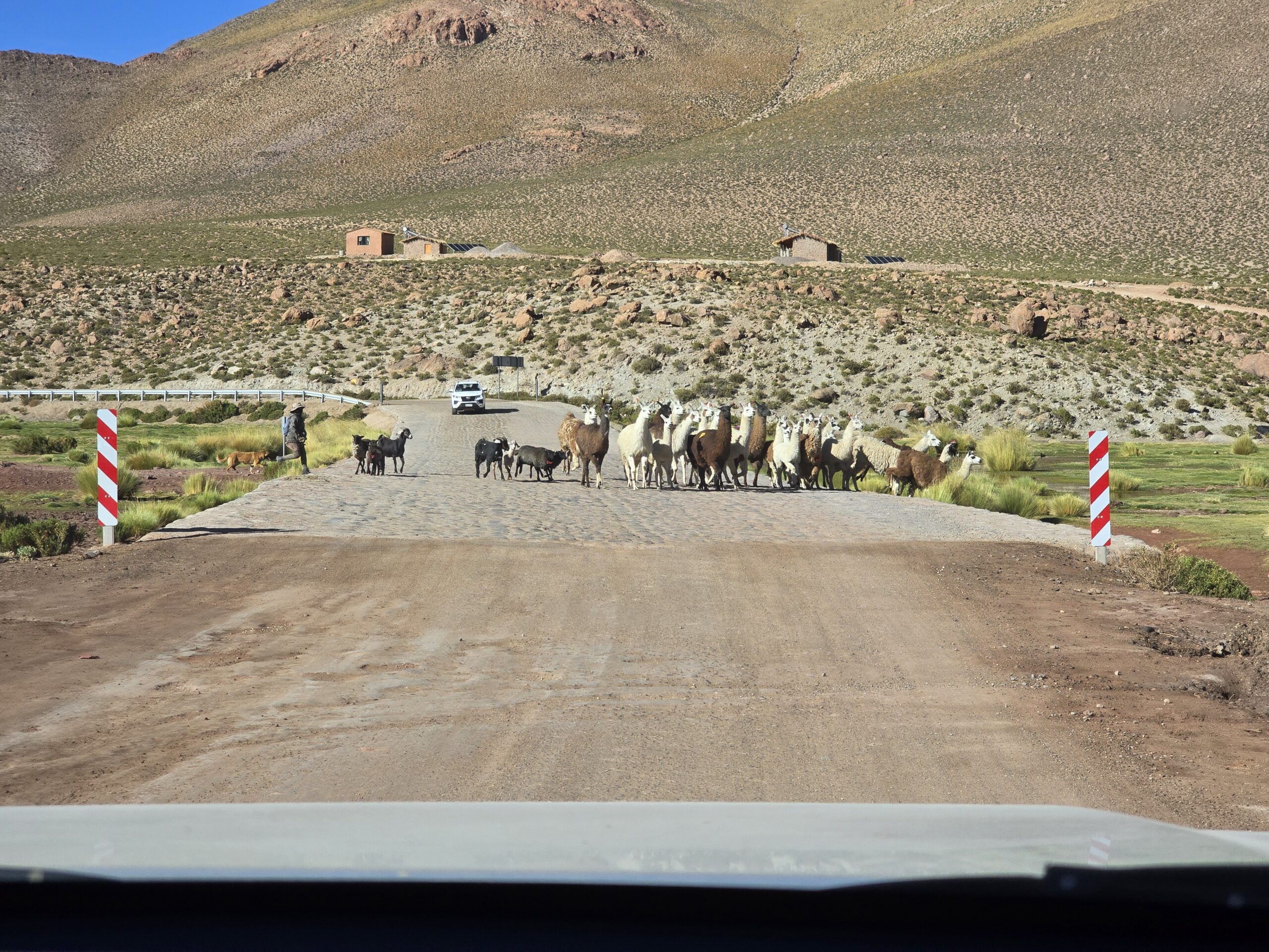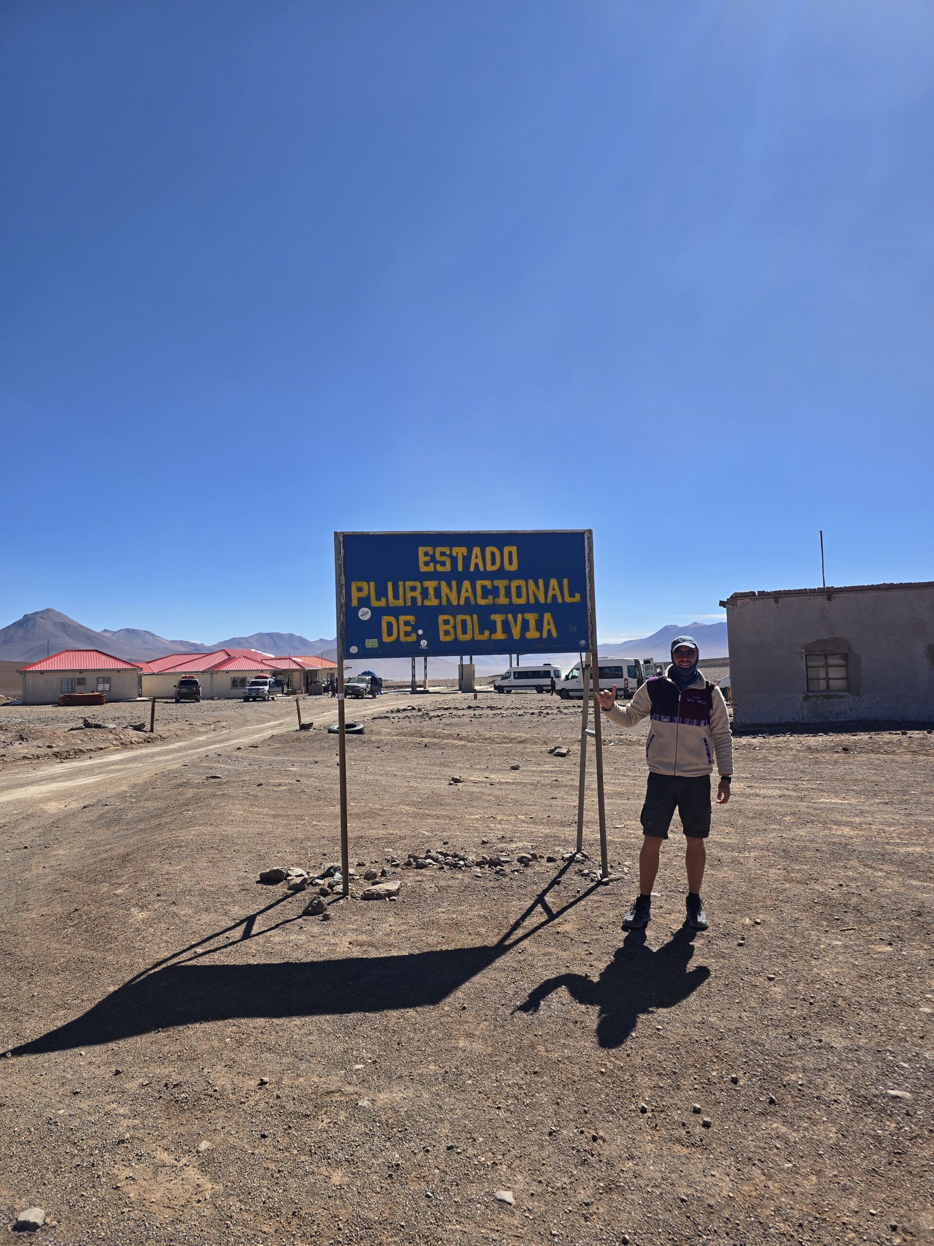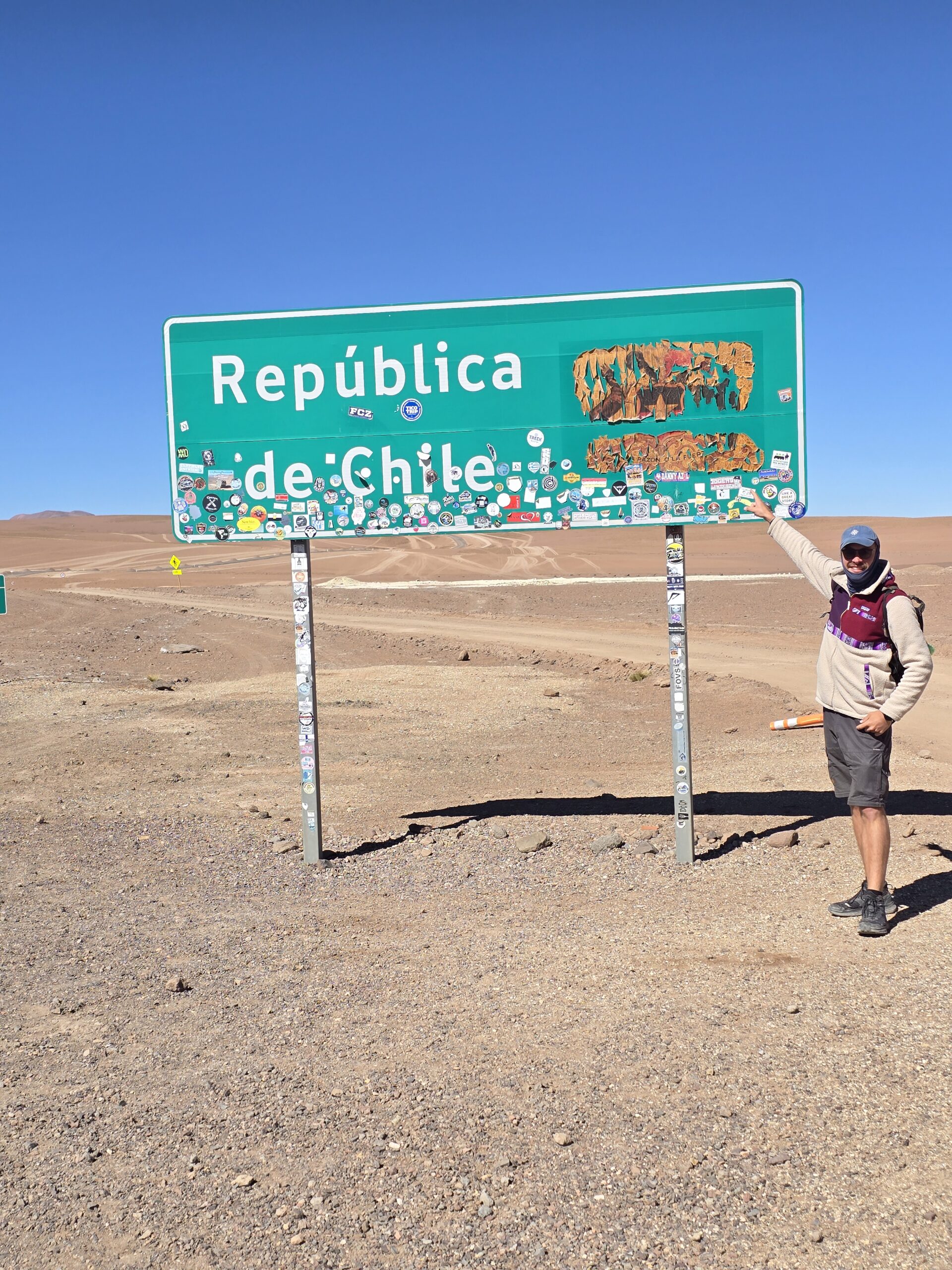 Kurze Zeit später waren wir dann schon an der Grenze und hier hieß es für die Ausreise erstmal warten! Schon verrückt wie hier mitten im Nichts ein Grenzposten steht und unsere Guidin Erika meinte die rotieren nur alle 3 Monate! Nachdem wir den Stempel hatten noch kurz verabschieden, Fotos mit den Schildern machen und dann ging es auch schon weiter zur Einreisekontrolle nach Chile. Wie ich schon vermutete haben die mal wieder meine Jonglierbälle als Früchte erkannt. Der Grenzbeamte musste herzhaft lachen als ich die rausgeholt habe und hat mir auch das Bild auf dem X-Rey gezeigt, leider durfte ich aber kein Foto davon machen.