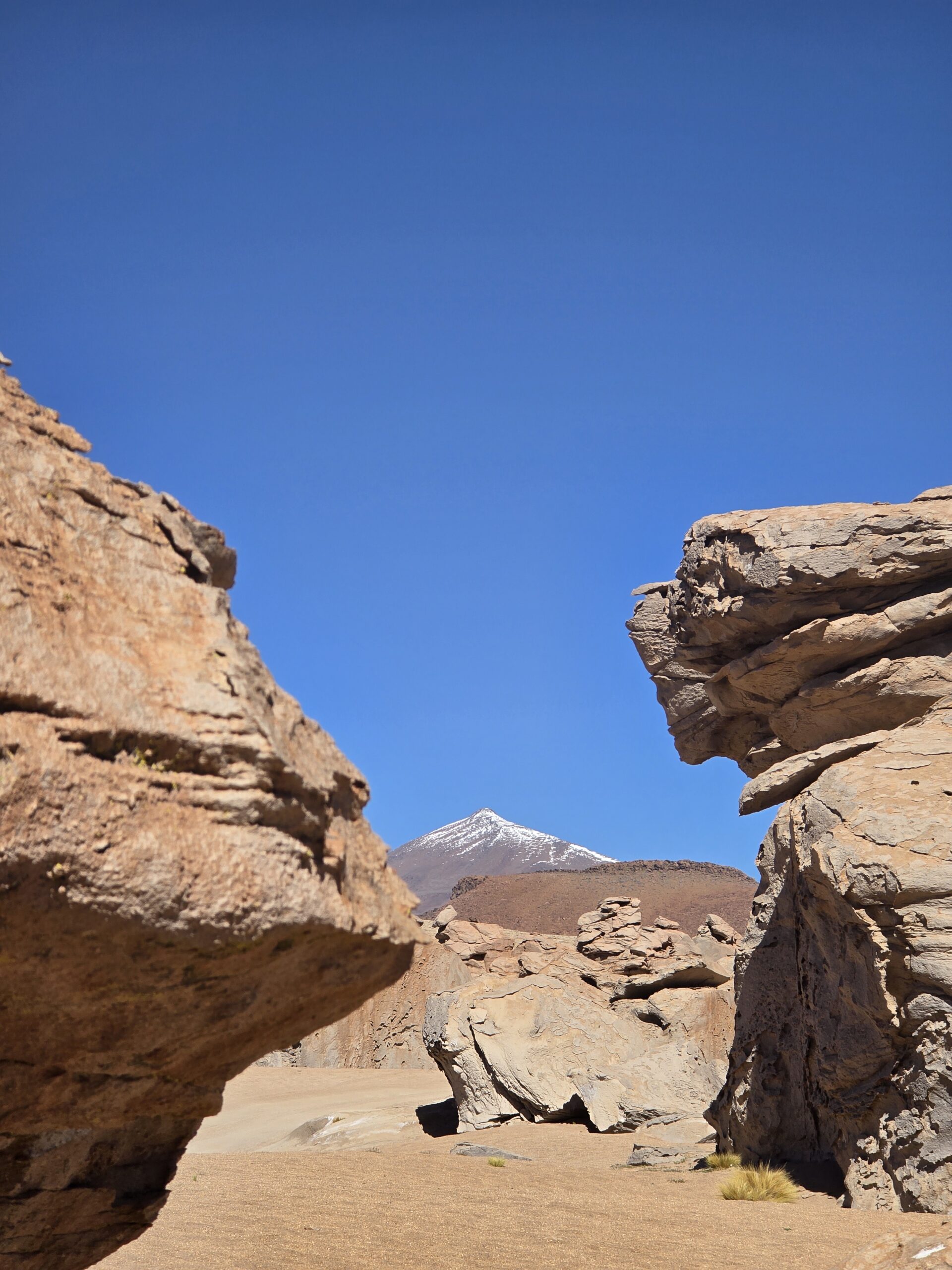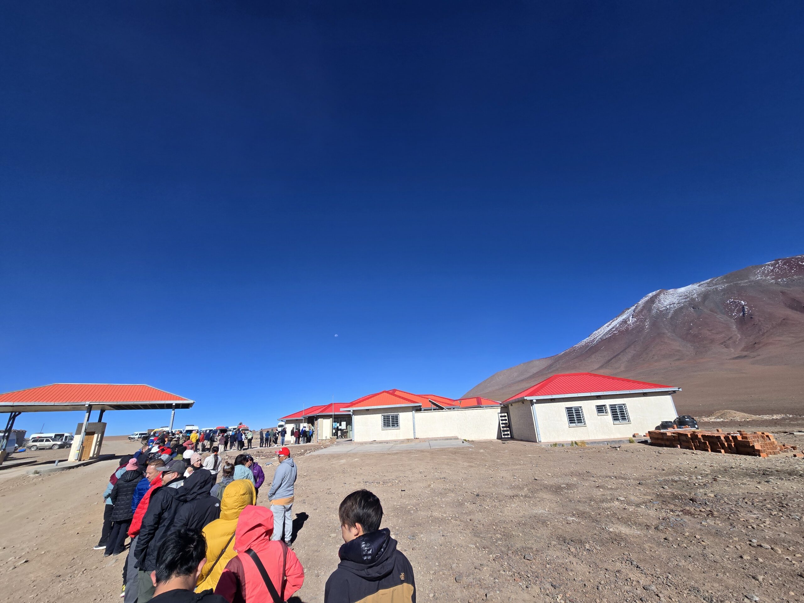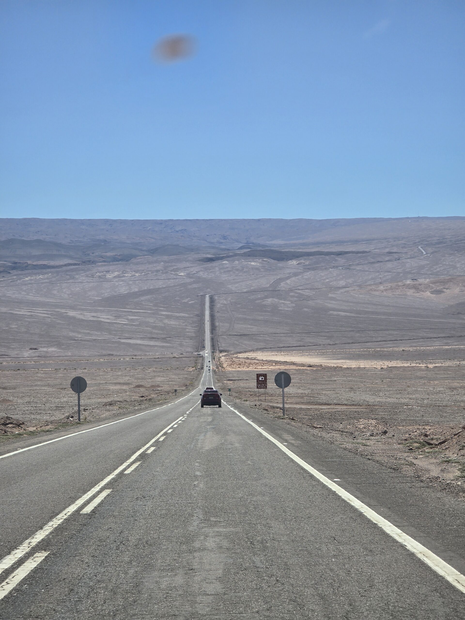 Kurze Zeit später waren wir dann schon an der Grenze und hier hieß es für die Ausreise erstmal warten! Schon verrückt wie hier mitten im Nichts ein Grenzposten steht und unsere Guidin Erika meinte die rotieren nur alle 3 Monate! Nachdem wir den Stempel hatten noch kurz verabschieden, Fotos mit den Schildern machen und dann ging es auch schon weiter zur Einreisekontrolle nach Chile. Wie ich schon vermutete haben die mal wieder meine Jonglierbälle als Früchte erkannt. Der Grenzbeamte musste herzhaft lachen als ich die rausgeholt habe und hat mir auch das Bild auf dem X-Rey gezeigt, leider durfte ich aber kein Foto davon machen.
