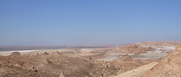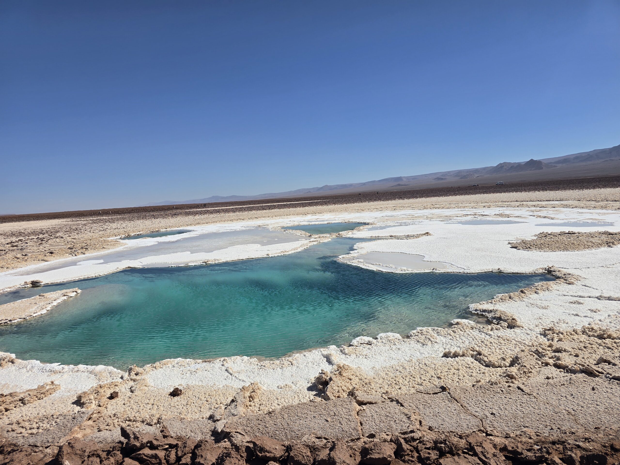 Danach ging es weiter zu einer salzigen Lagune, der Escondidas de Baltinache. Das ist eine Ansammlung von extrem salzigen sehen und in einer kann man auch „schwimmen“. Erstmal ging es aber wieder durch eine surreale Landschaften. Alles ist riesig, man sieht keinerlei Vegetation, es fühlt sich wirklich an wie auf einem anderen Planeten. Man bekommt dieses Gefühl nur schwer auf Fotos oder Videos vermittelt, aber mit dieser Aufnahme habe ich es zumindest versucht: