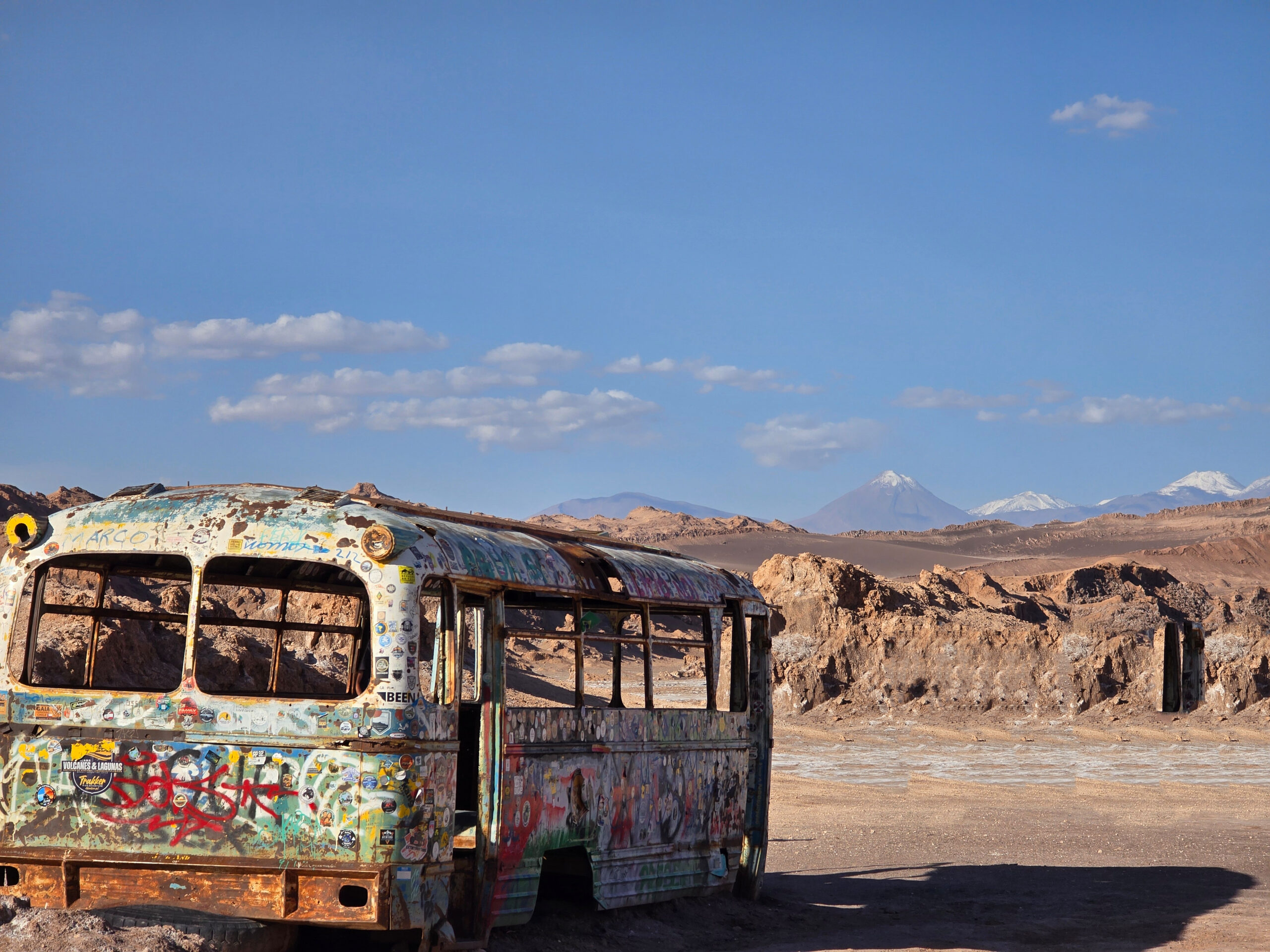 Auf dem Rückweg ging es noch zum magic bus. Meine Theorie war hier, dass ein Hippie, den in den 70ern hier hat stehen lassen, aber unspektakulärer weise war es ein Bus mit dem Arbeiter in die Salzminen gefahren wurde und der Irgendwann einfach hier zurückgelassen wurde. Der Weg dorthin war mal ein wenig mehr Offroad, macht immer wieder Spaß so etwas. Hier hat sich das Auto auch mal wieder gelohnt, denn die Tour hier her kostet schlappe 35€ und man guckt sich am Ende halt einen verrosteten Bus an.